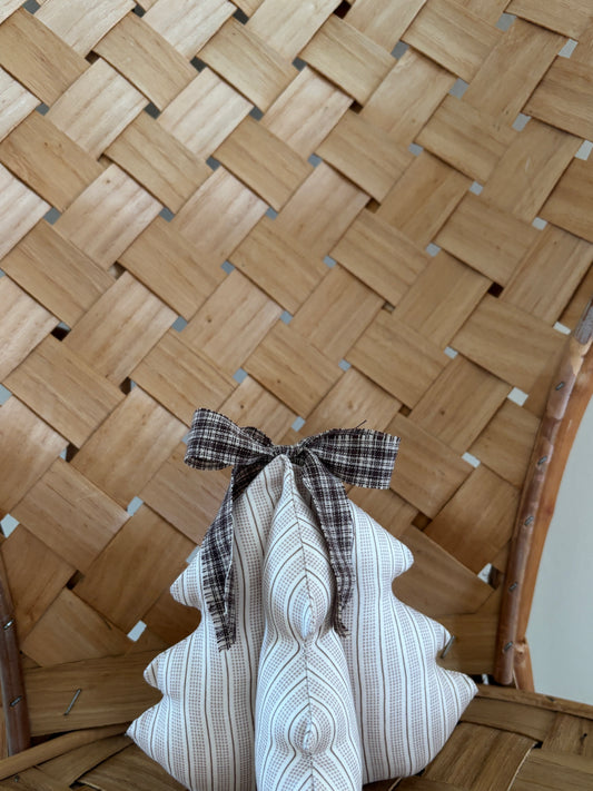 Håndlavet juletræ i bomuldsstof med sløjfe - beige strib