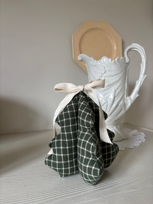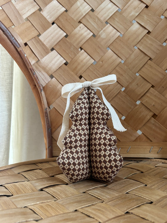 Håndlavet juletræ i bomuldsstof med sløjfe - brunternet