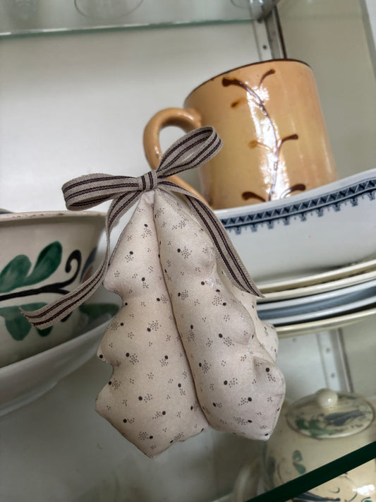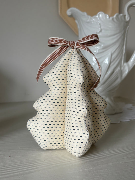 Håndlavet juletræ i bomuldsstof med sløjfe - creme/brun