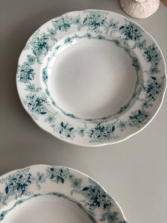 Dybe tallerkner med blå motiv i kanten