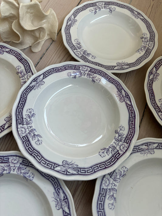 Sold outSmå dybetallerkner med lilla motiv