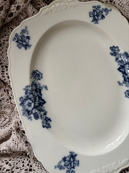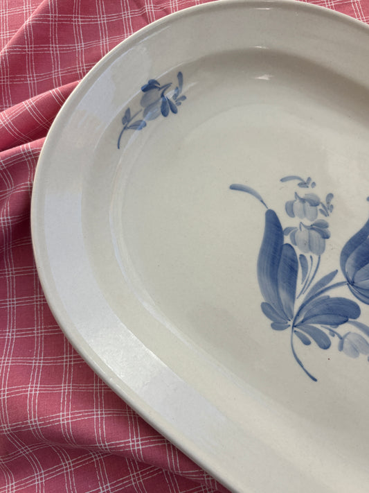 Stort fad med blå blomst