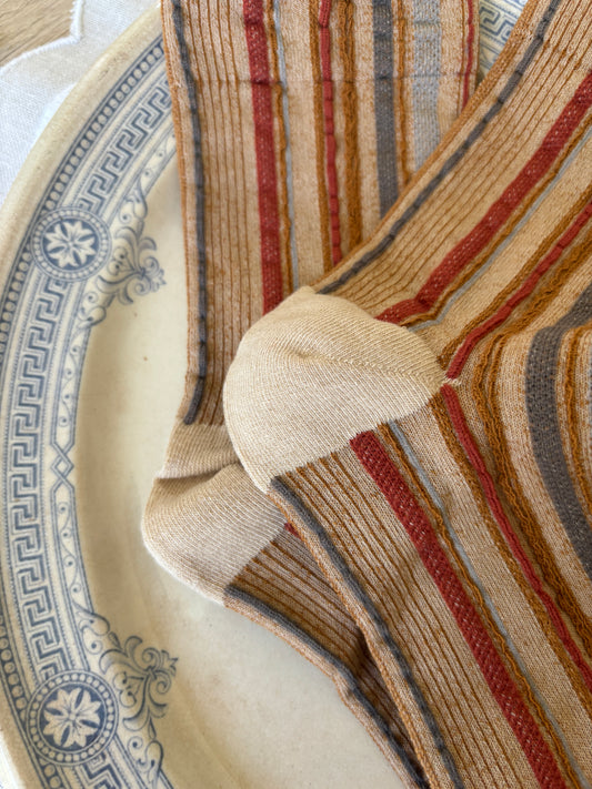Sold outStrømper stribet brun/creme
