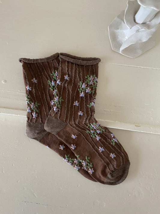 Sold outStrømper brune med motiv