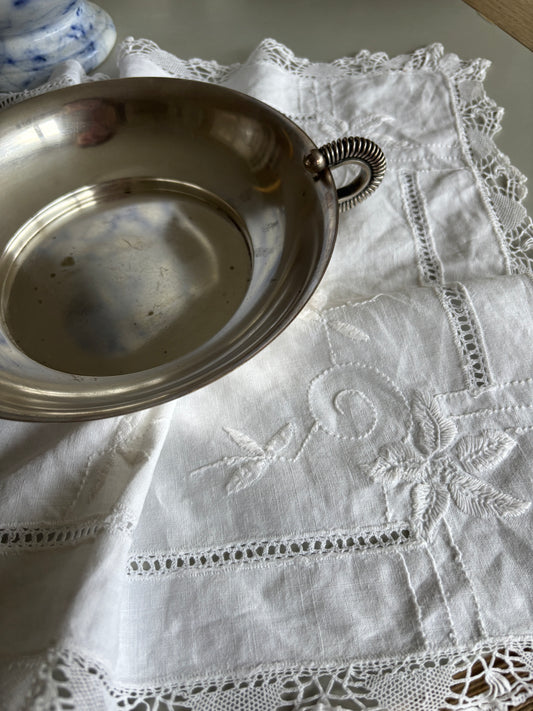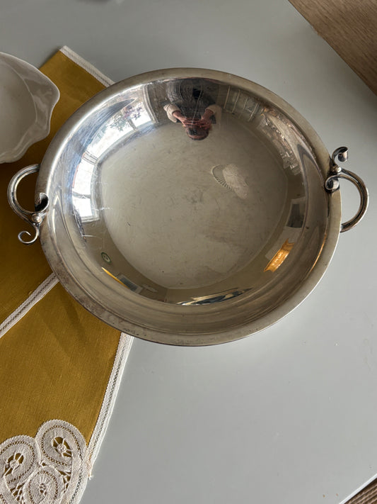 Pletsølv skål med håndtag