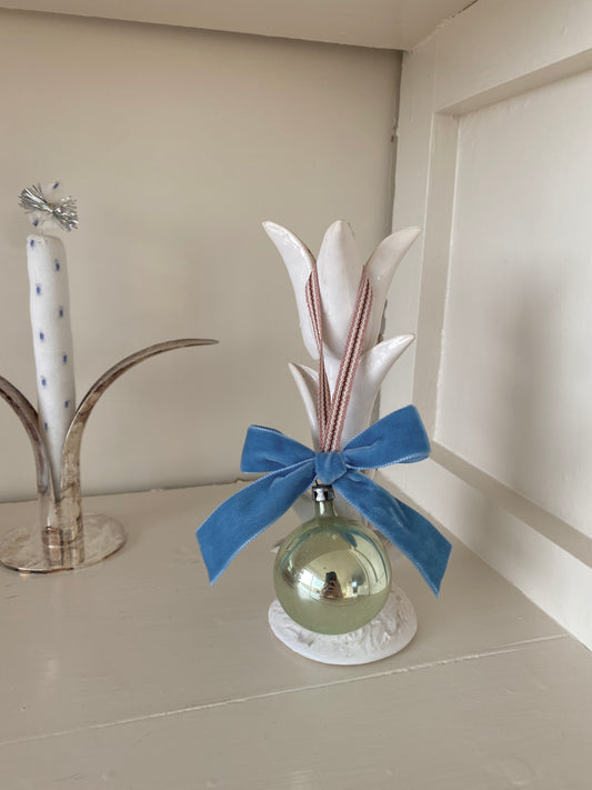 Vintage julekugle med sløjfe og bånd - grøn/blå