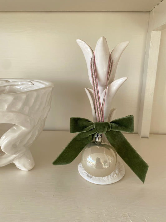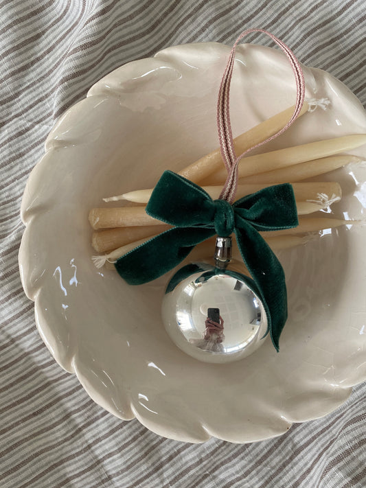 Vintage julekugle med sløjfe og bånd - mosgrøn/lyserød