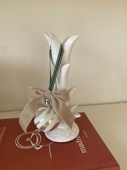 Vintage julekugle med sløjfe og bånd - beige/grøn