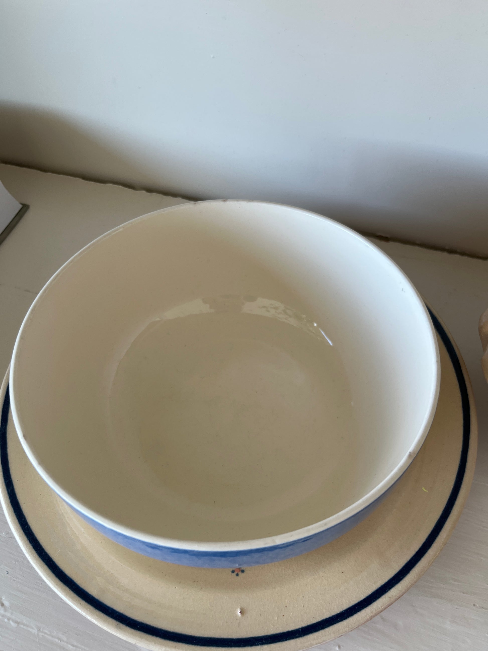 Fremstår med brugsspor og lidt falmet kant. Uden krakelering og skår.