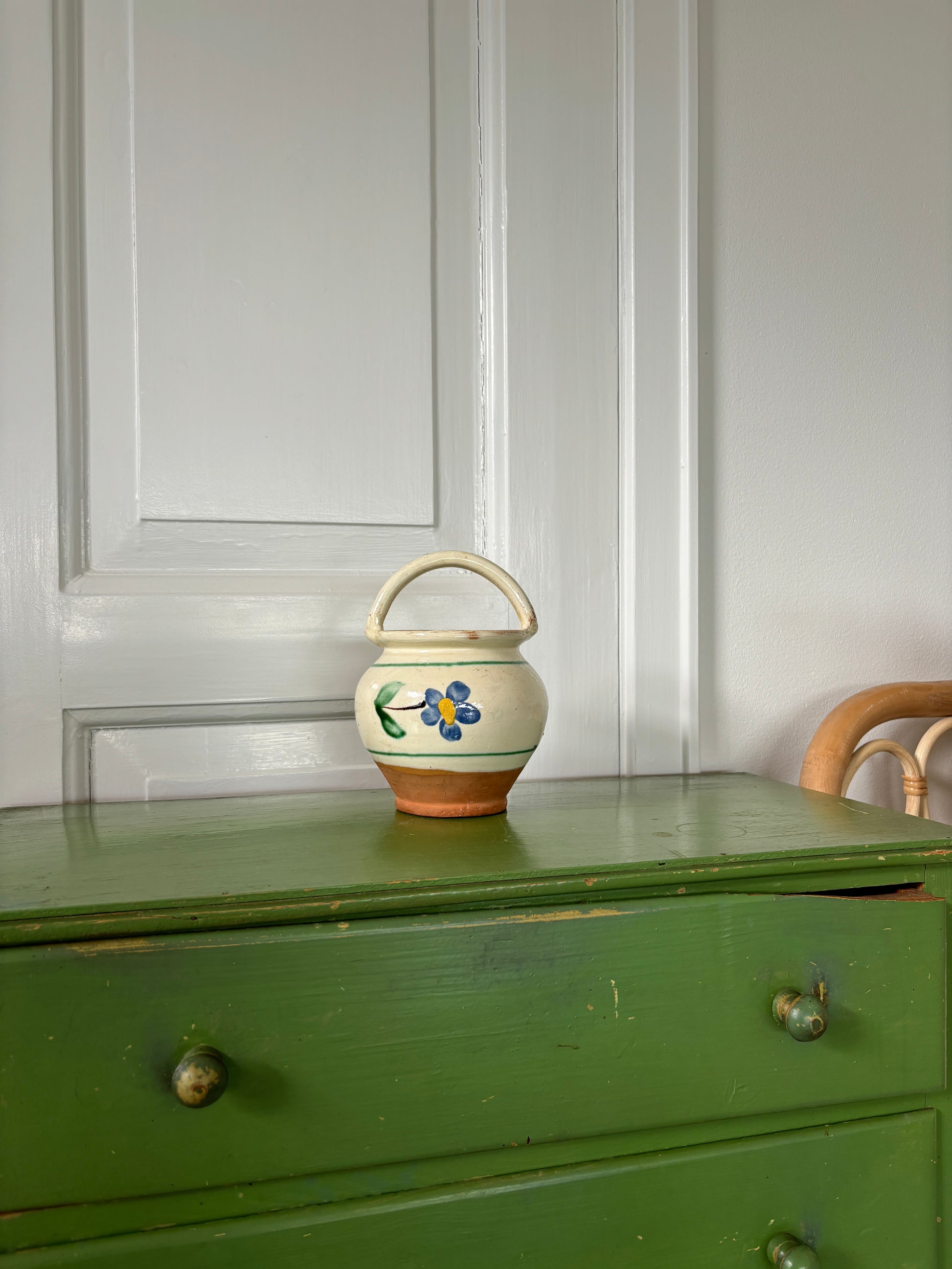 Fin gammel barselskrukke med blomster motiv