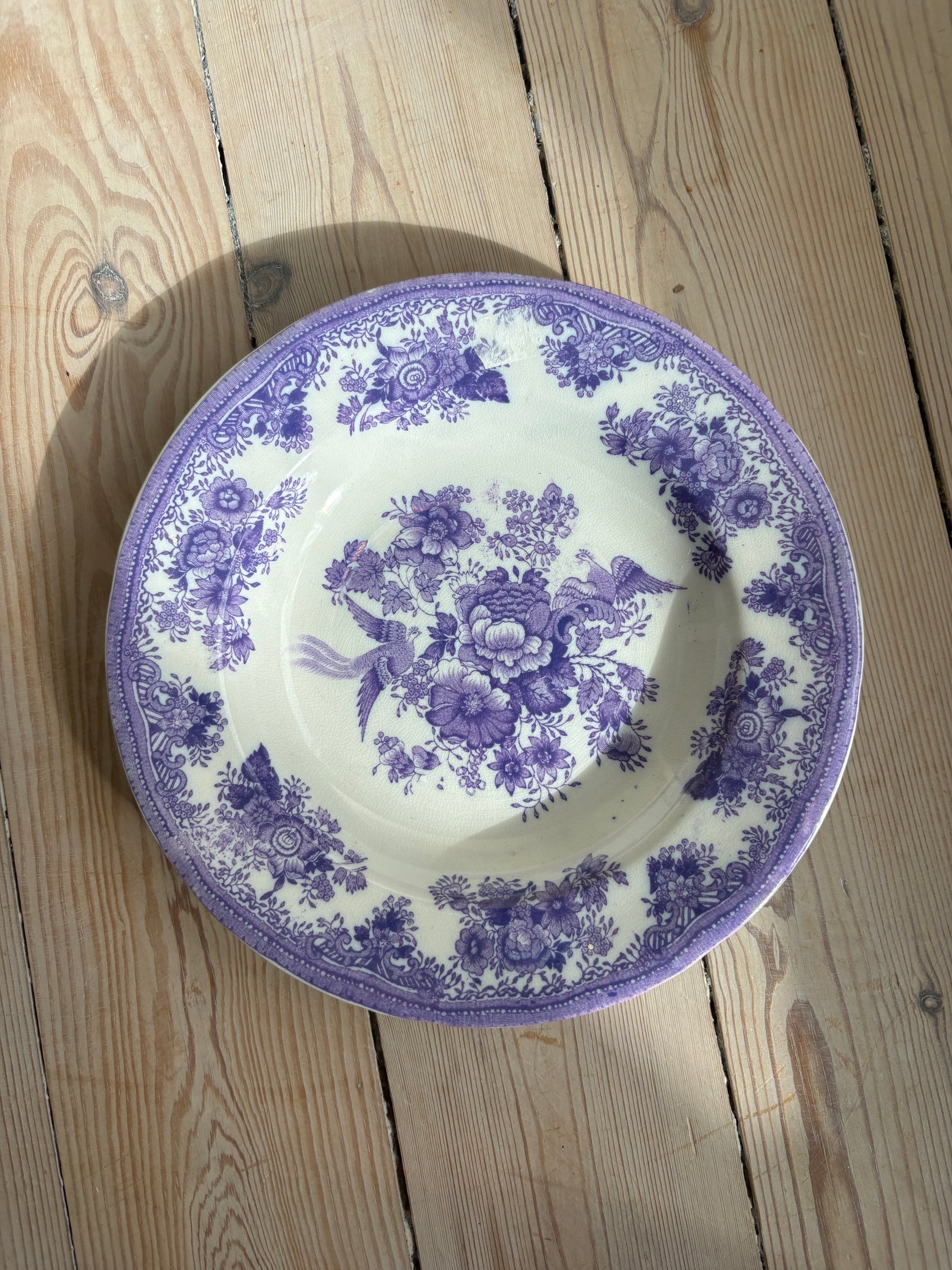 Smuk gammel tallerken med lilla motiv