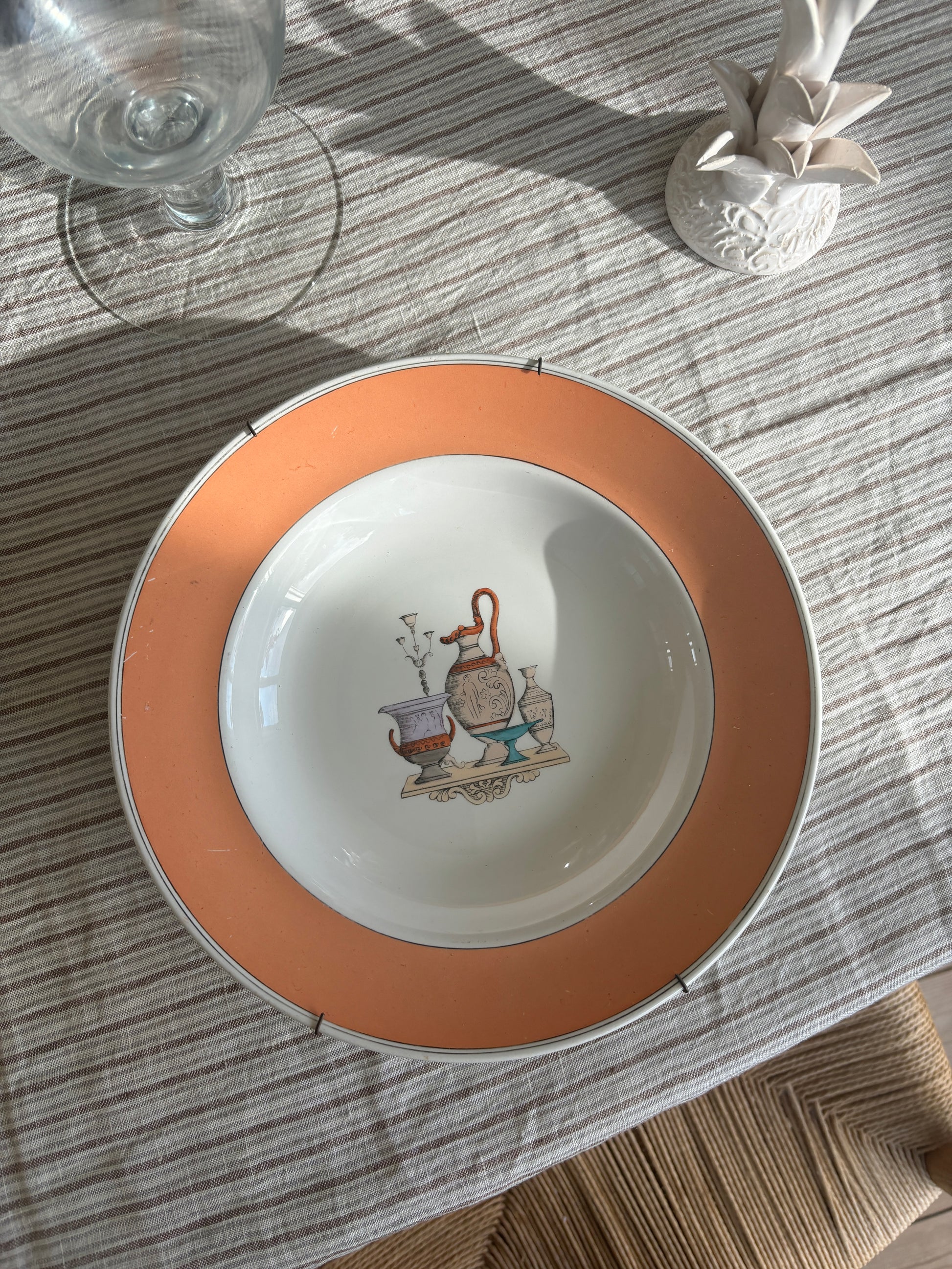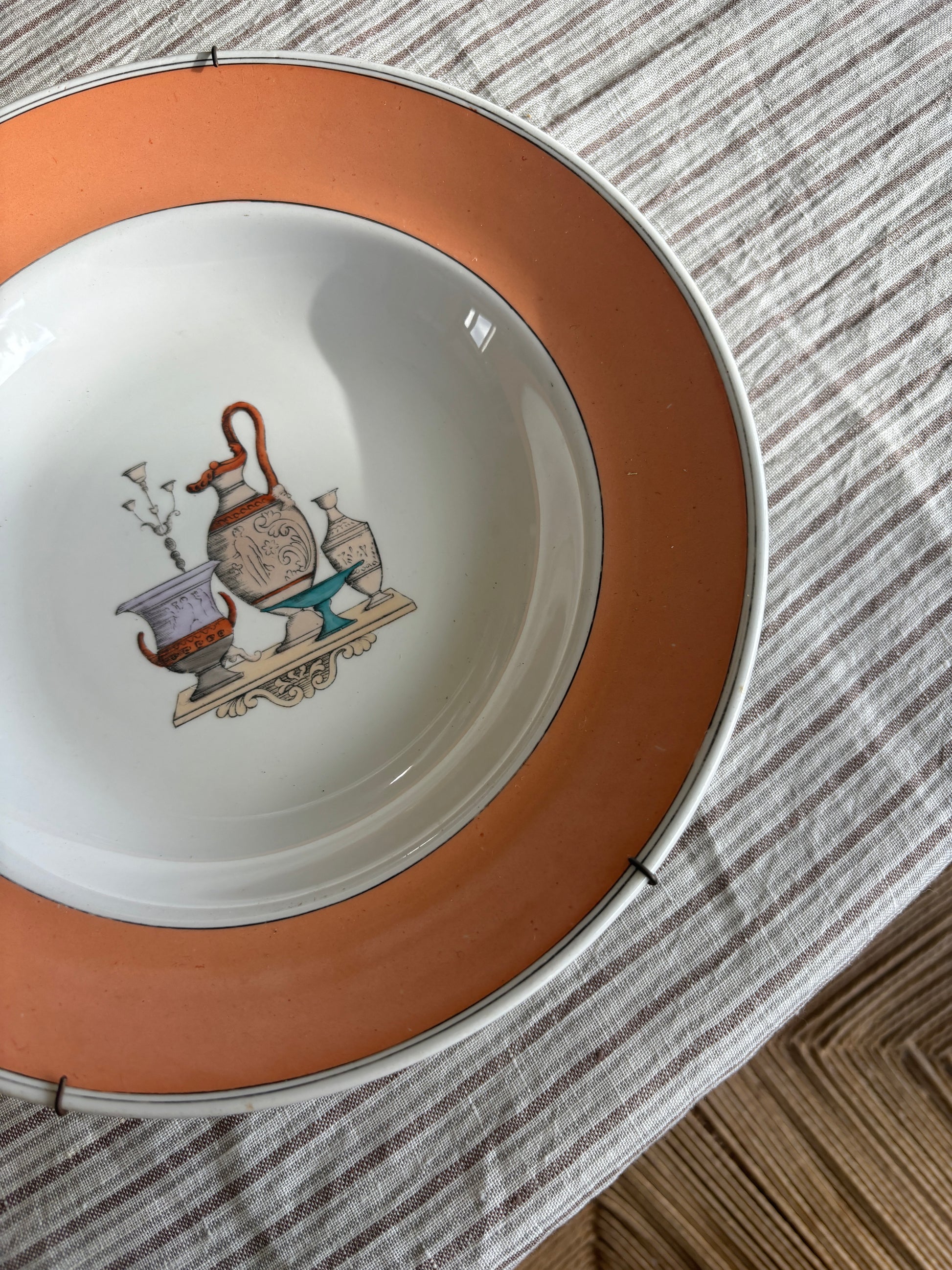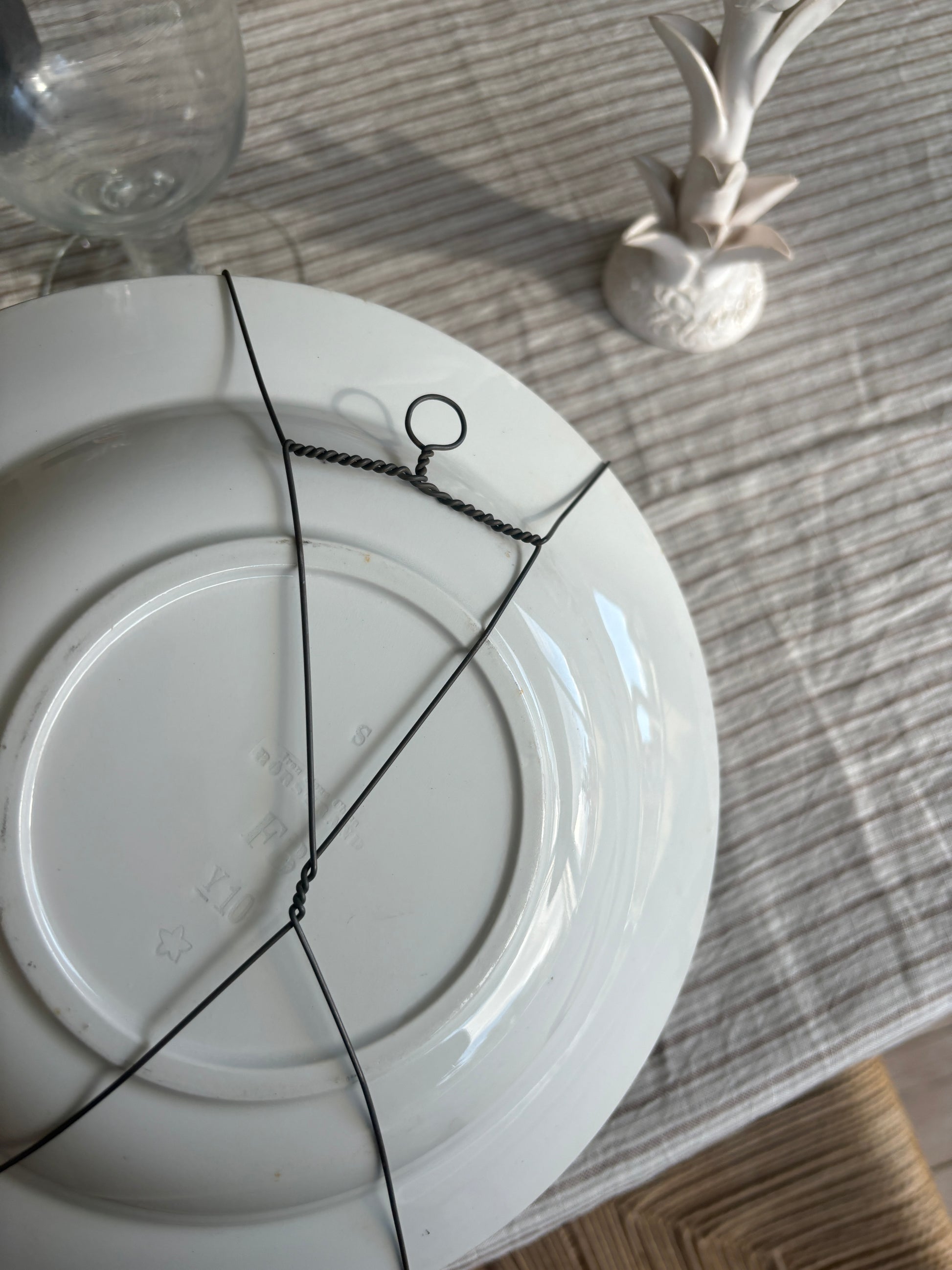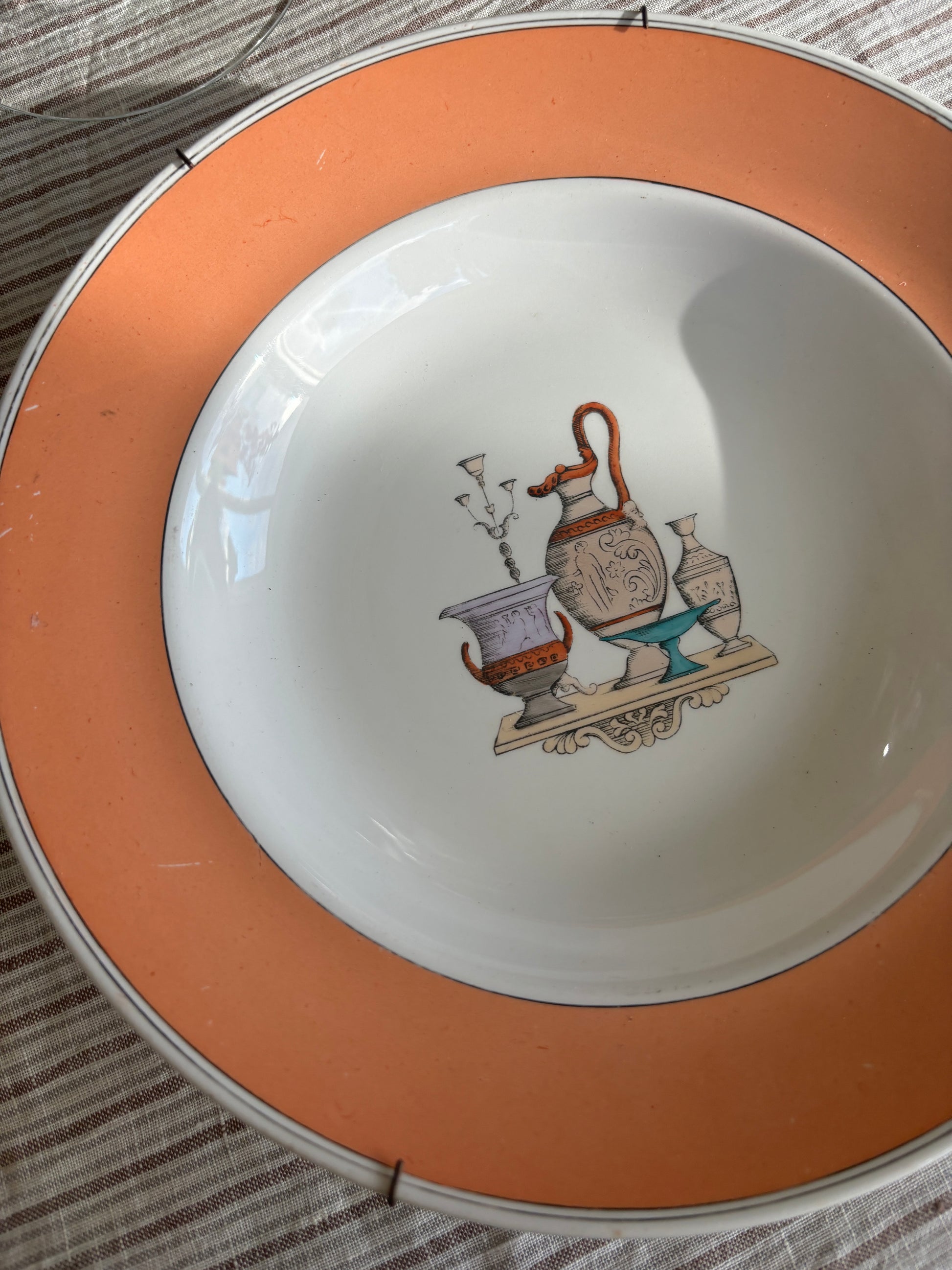 Smuk gammel platte med ferksenfarvet kant og fint motiv i midten
