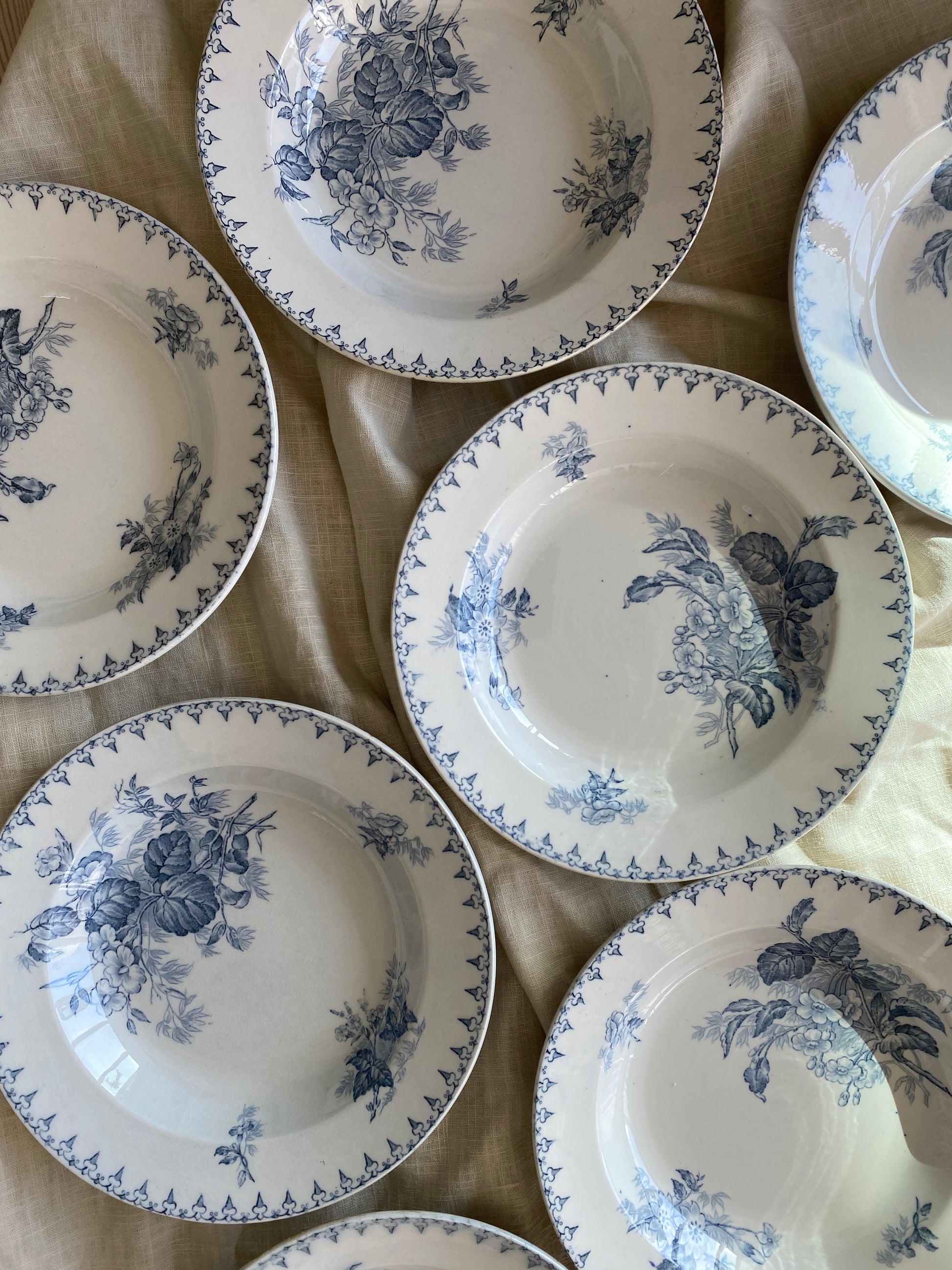 Smukke dybe tallerkner fra franske Sarreguemines, ‘FLORE’
