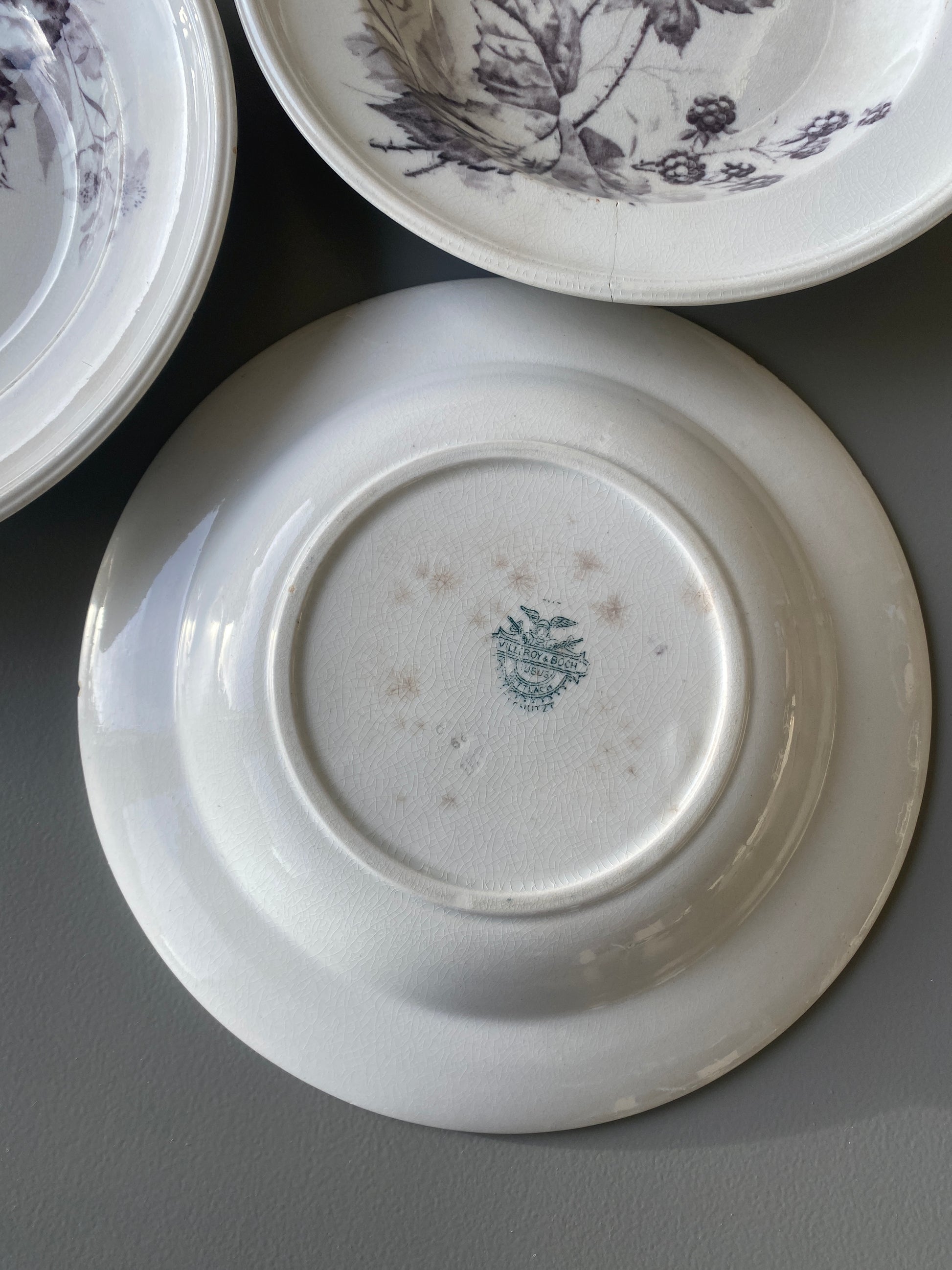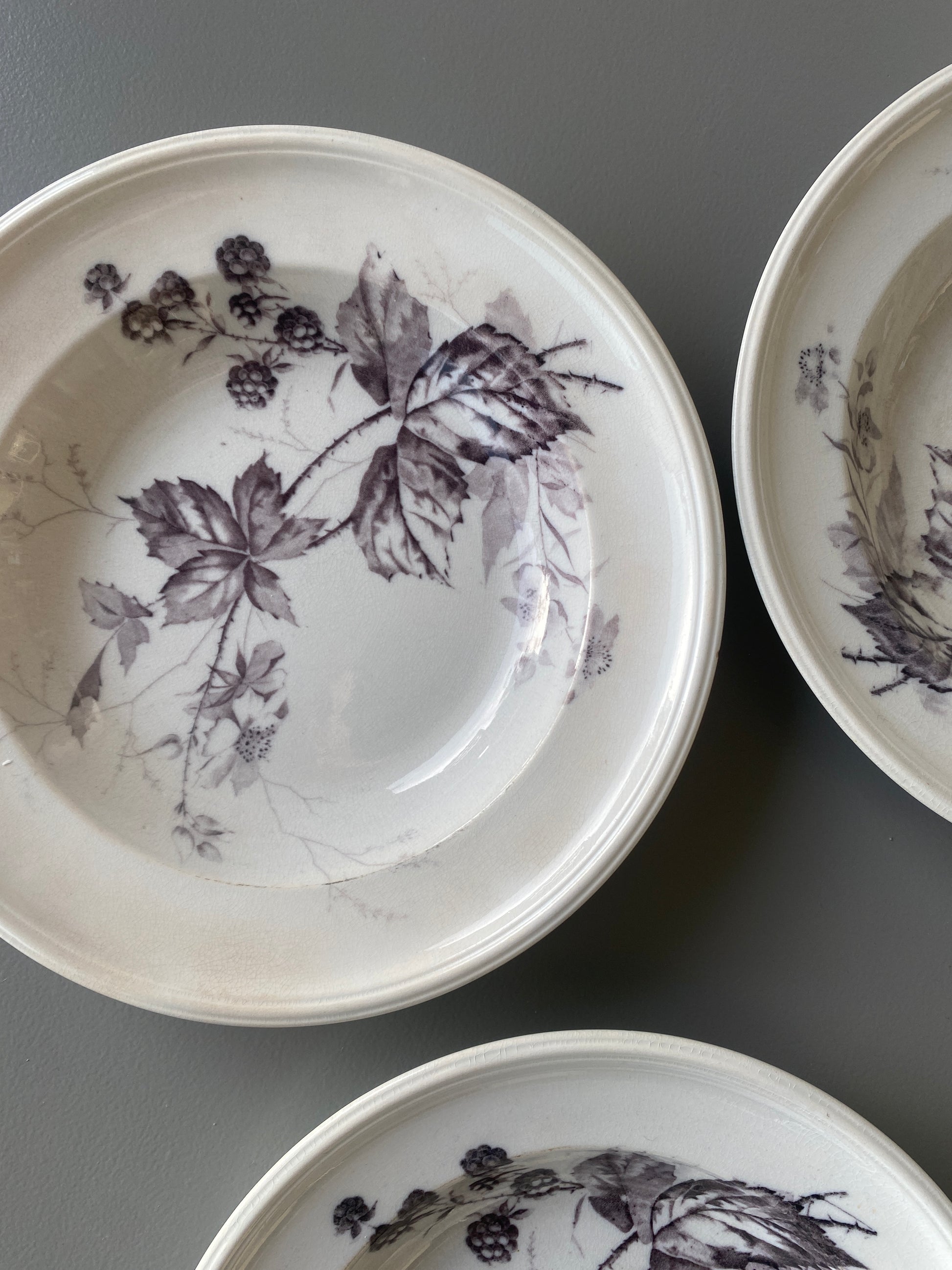Smukke gamle Villeroy & Boch dybe tallerkner. Med lille brombær mønster.