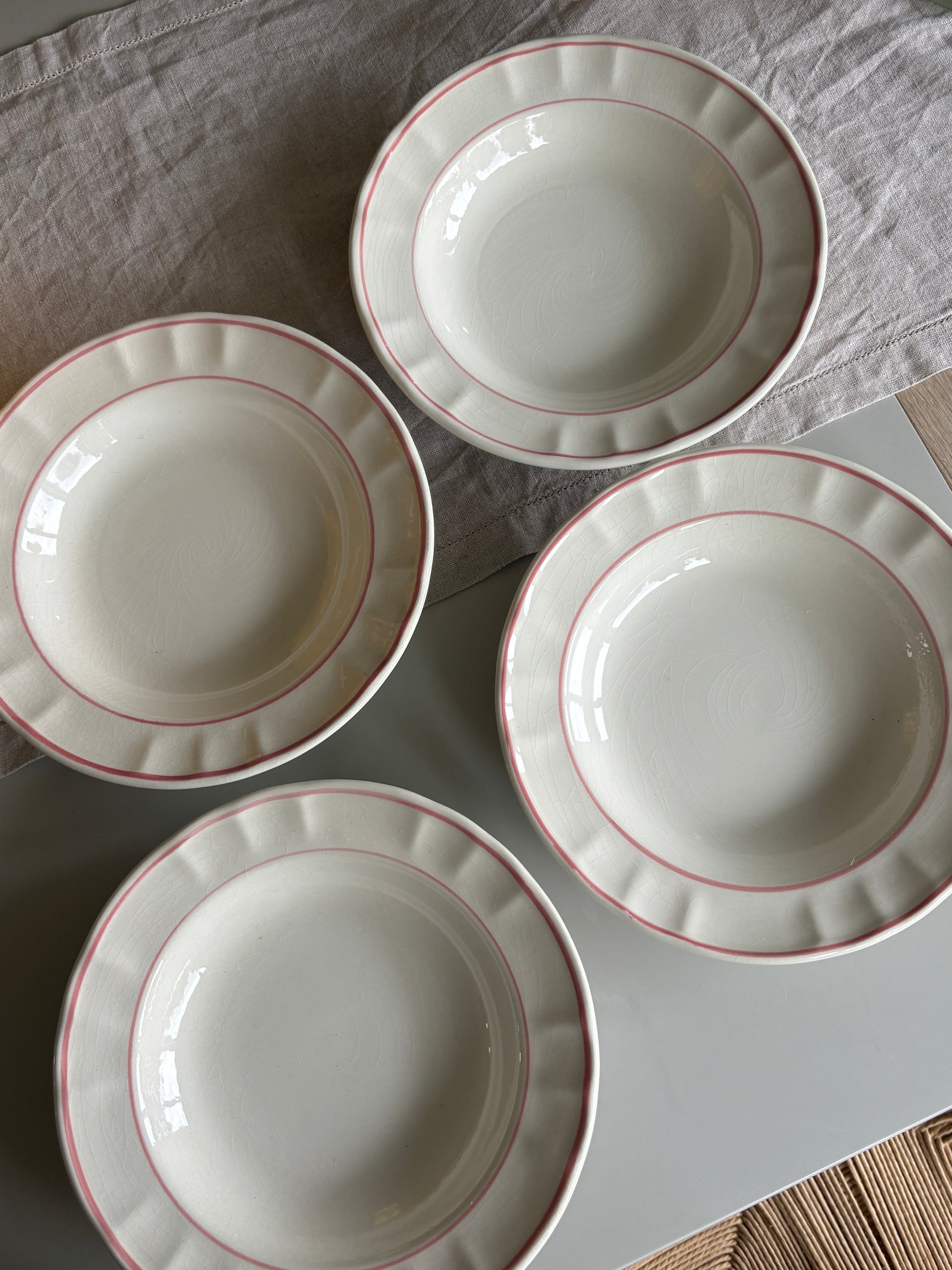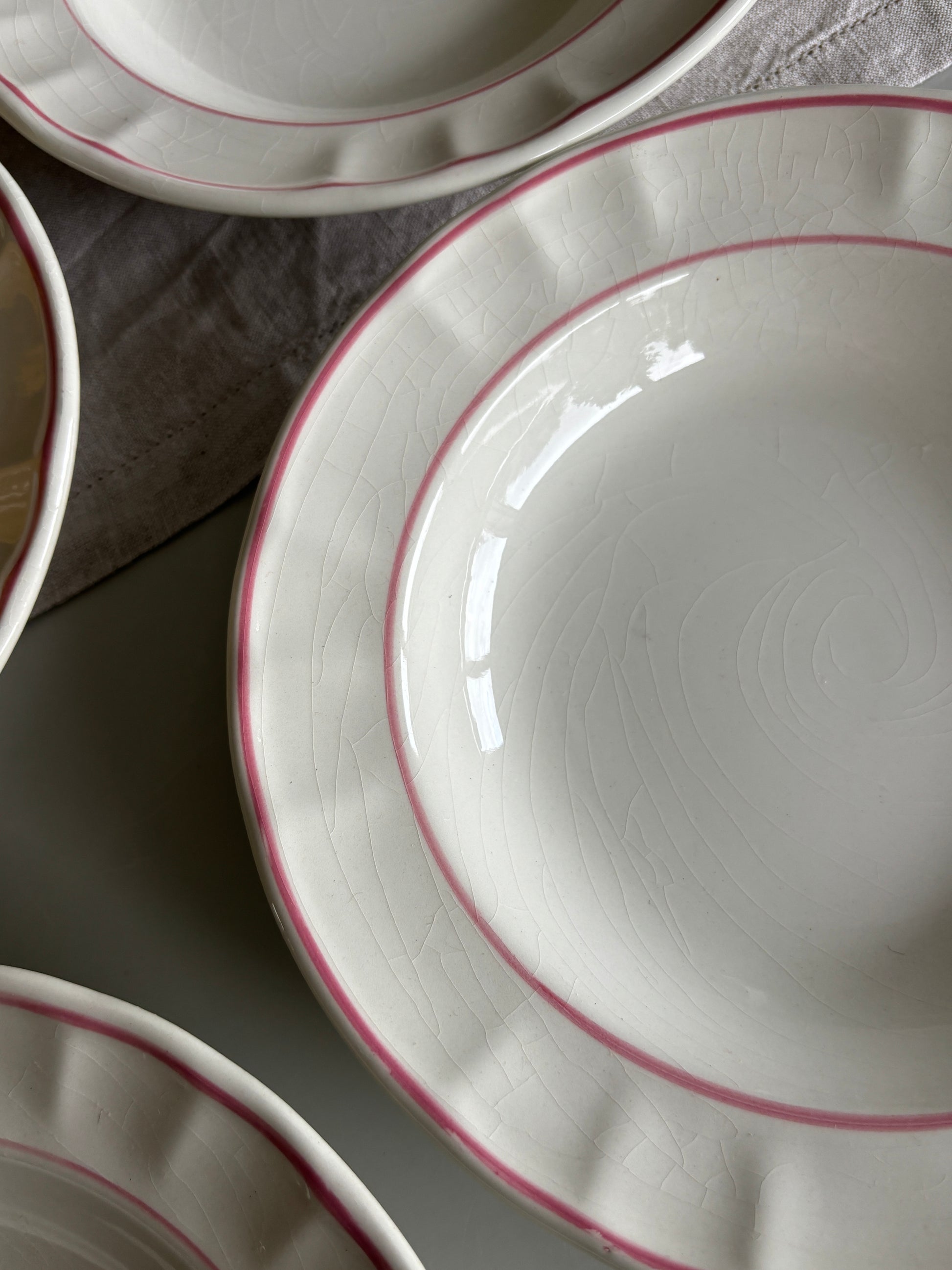 Fine dybe cremefarvet tallerkner med lyserød kant