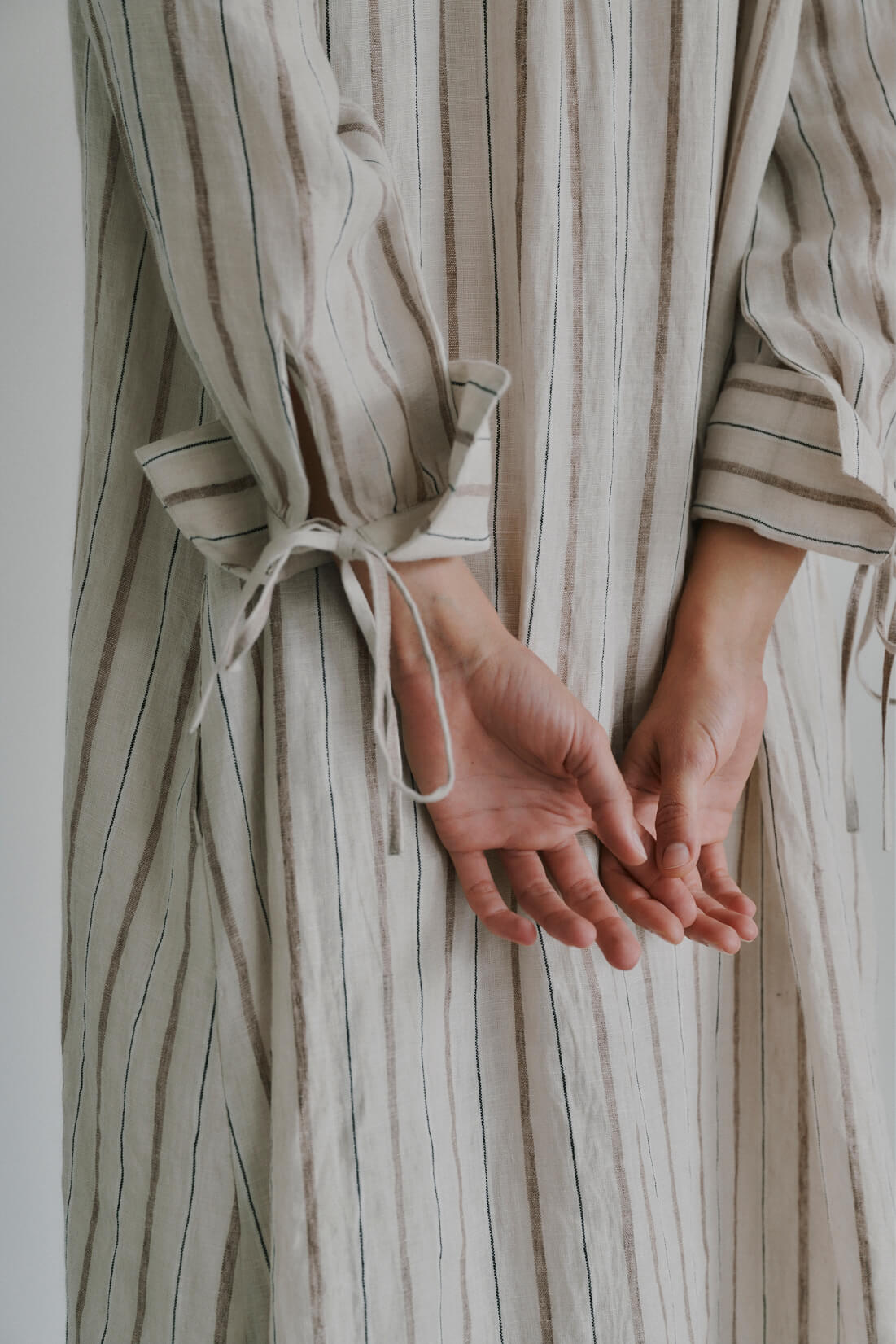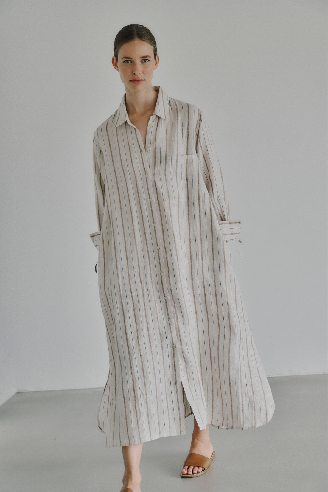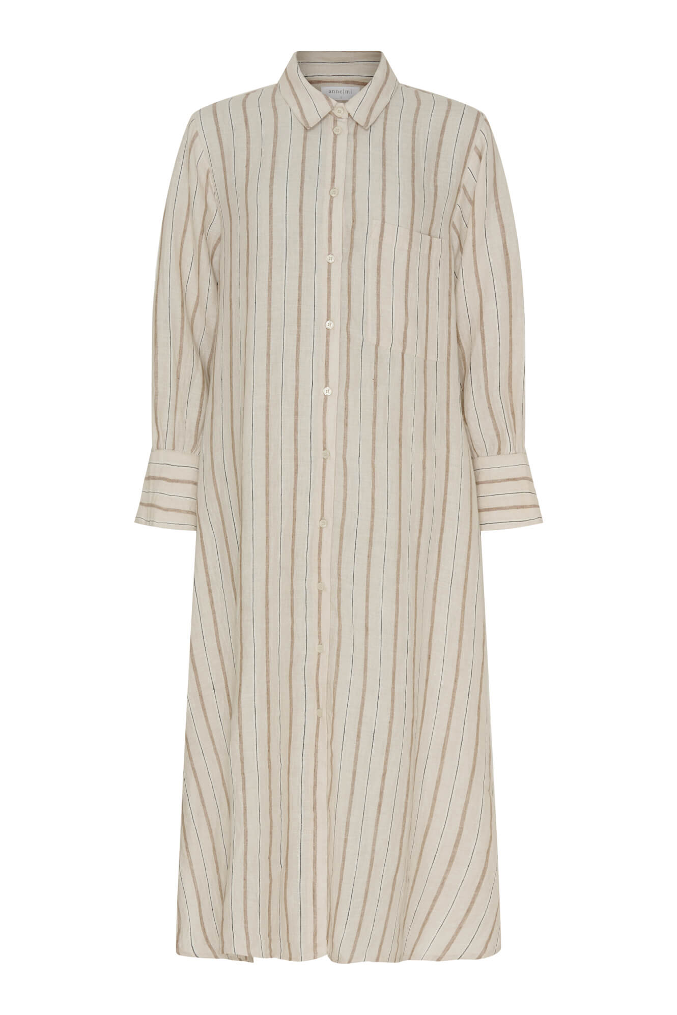 Lucia langærmet skjortekjole er lavet i ren hør med smukke brunlige striber.
