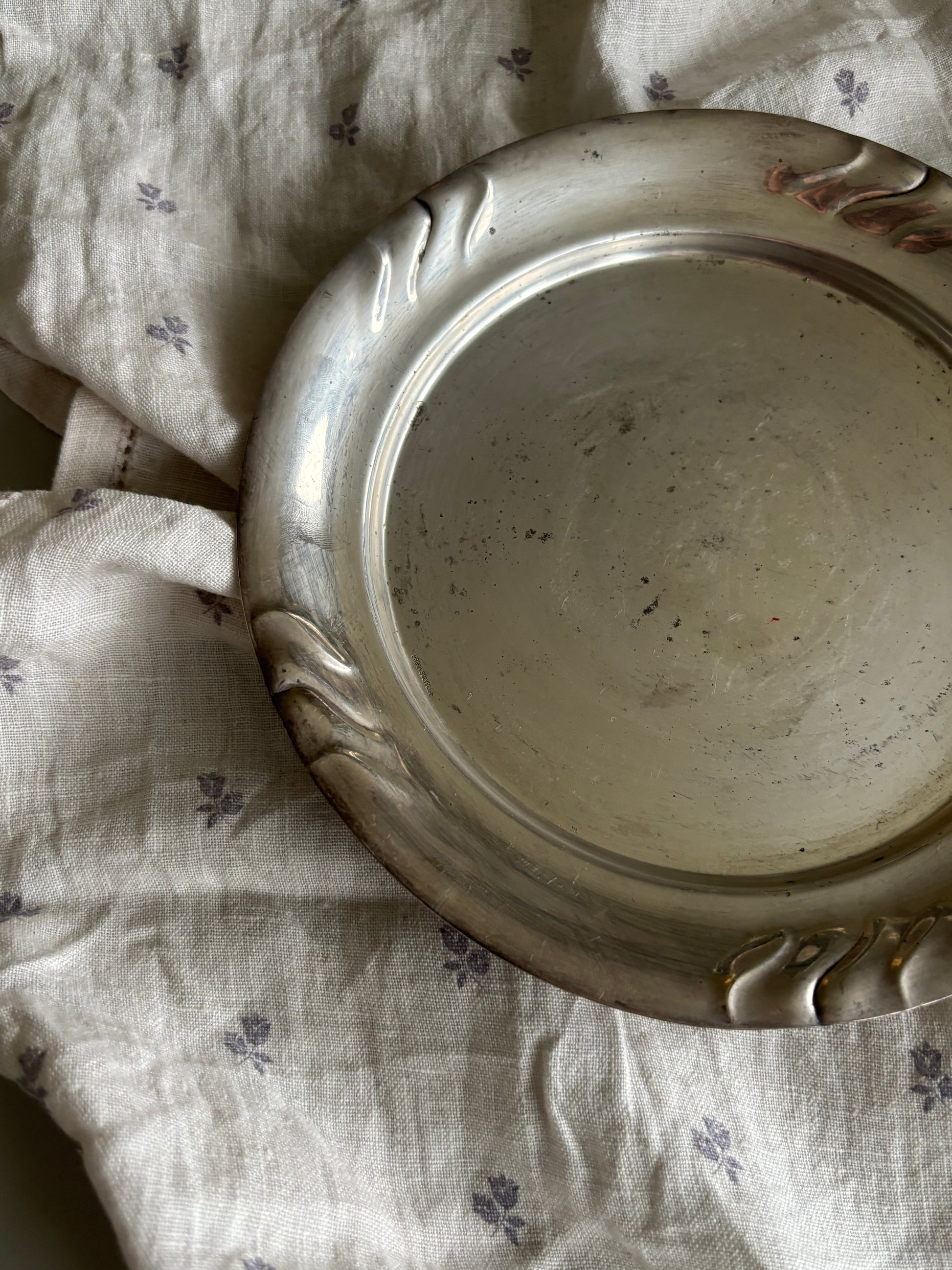 Rundt fad/ tallerknen i pletsølv med fine swirl detaljer
