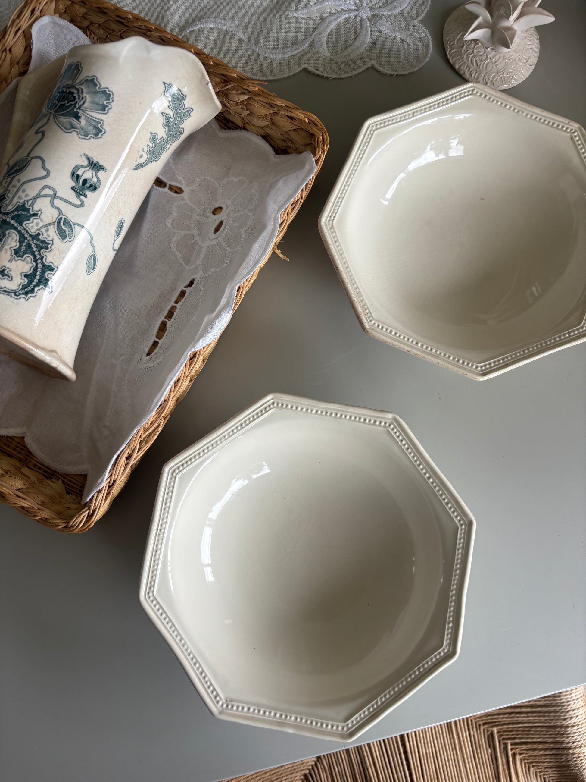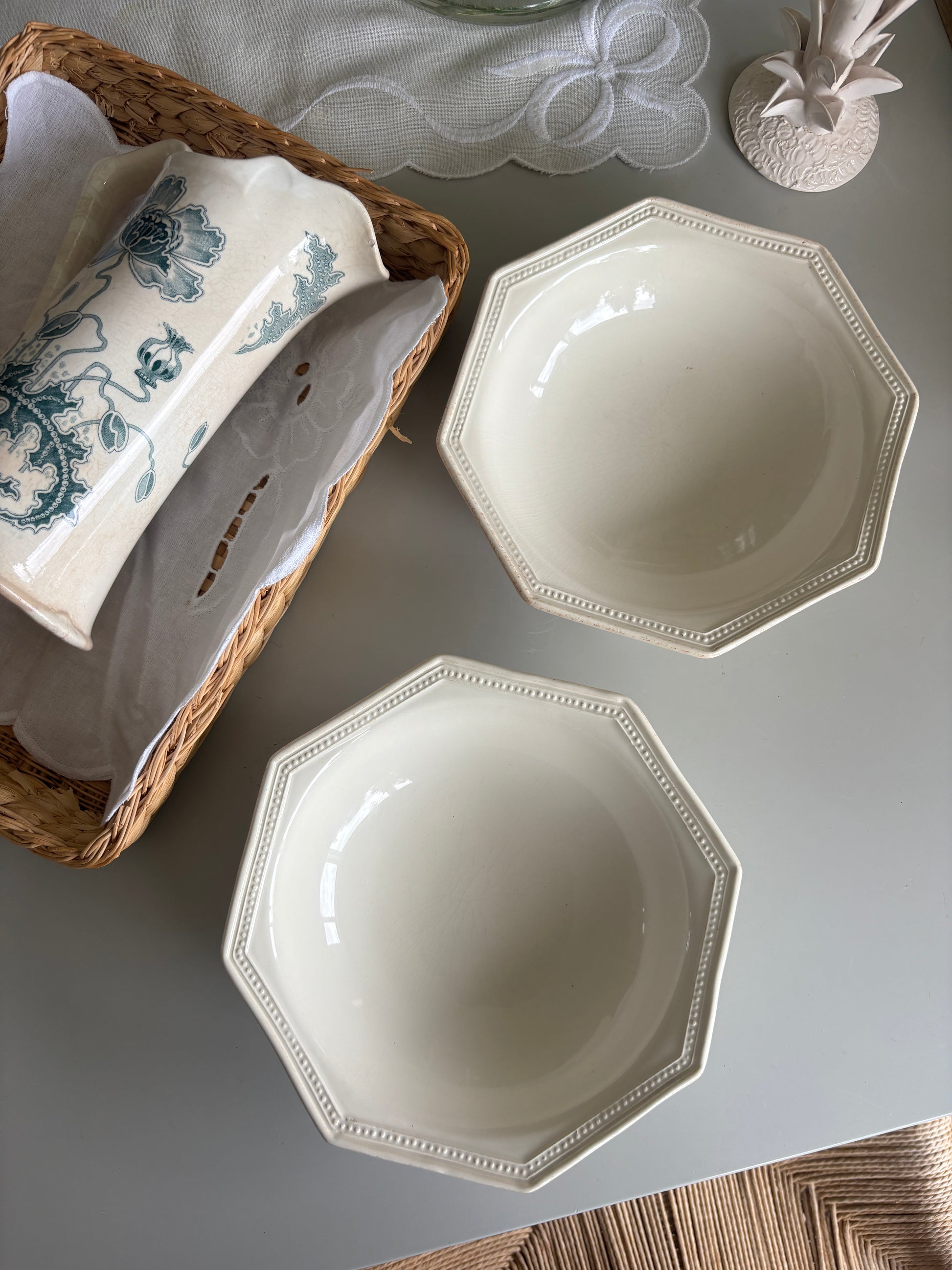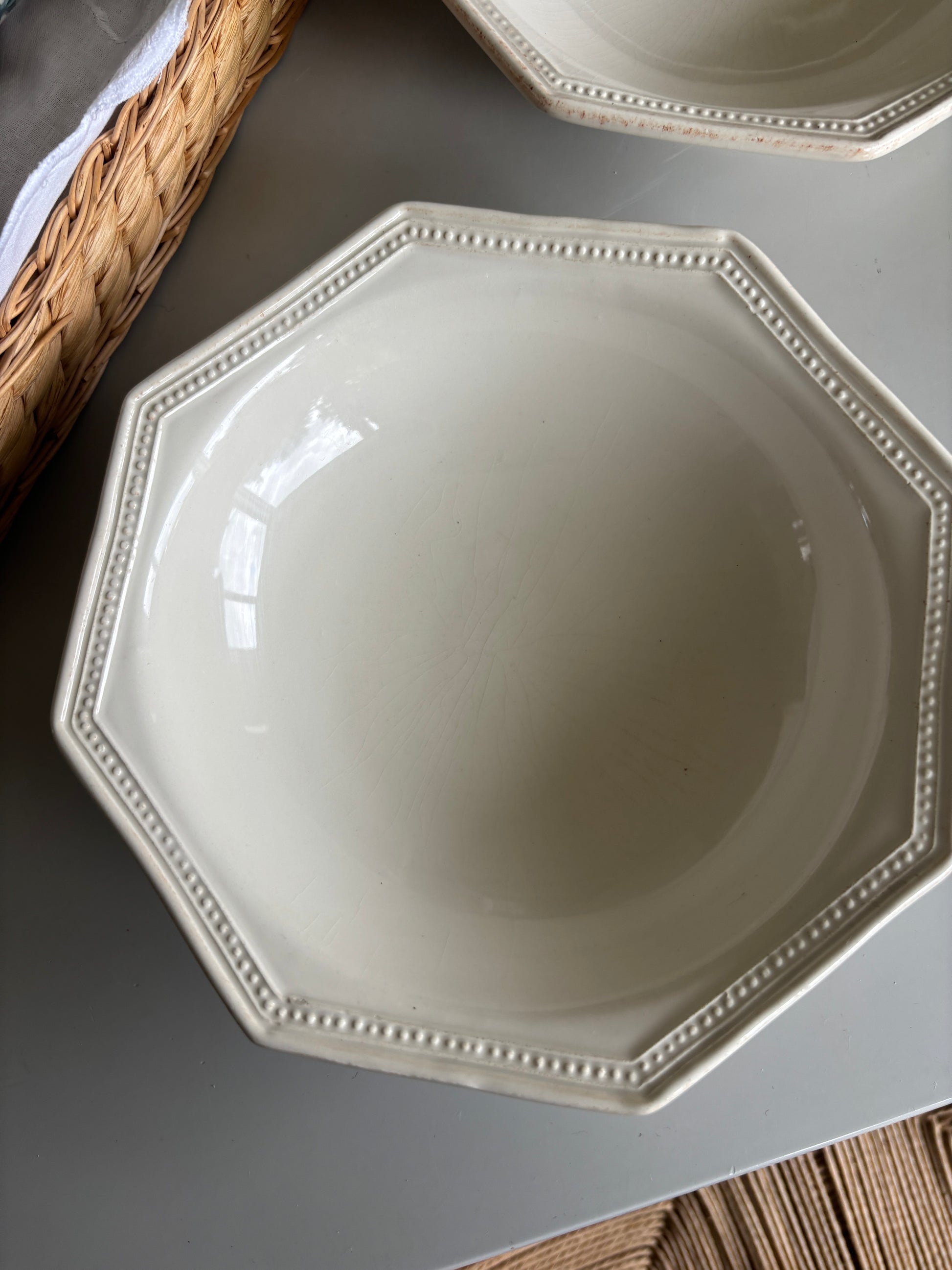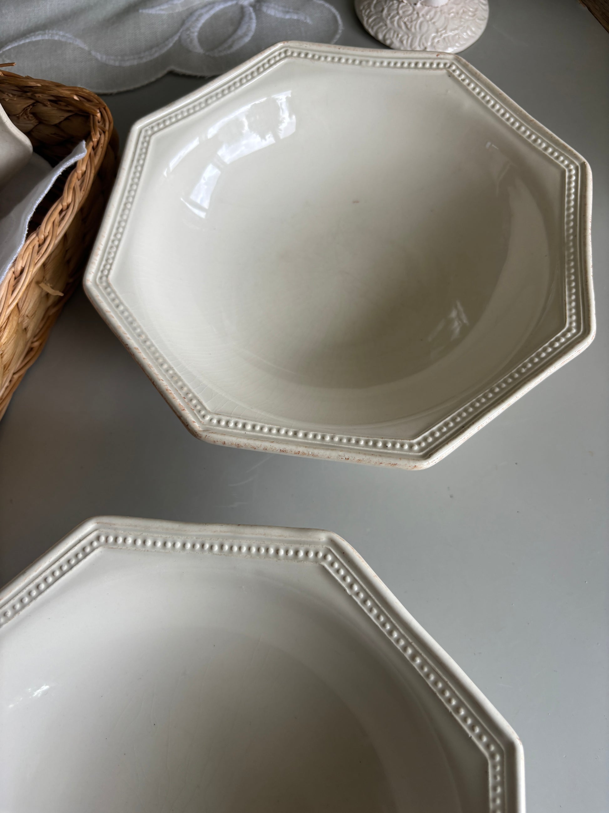 Fin cremefarvet skål med perlekant