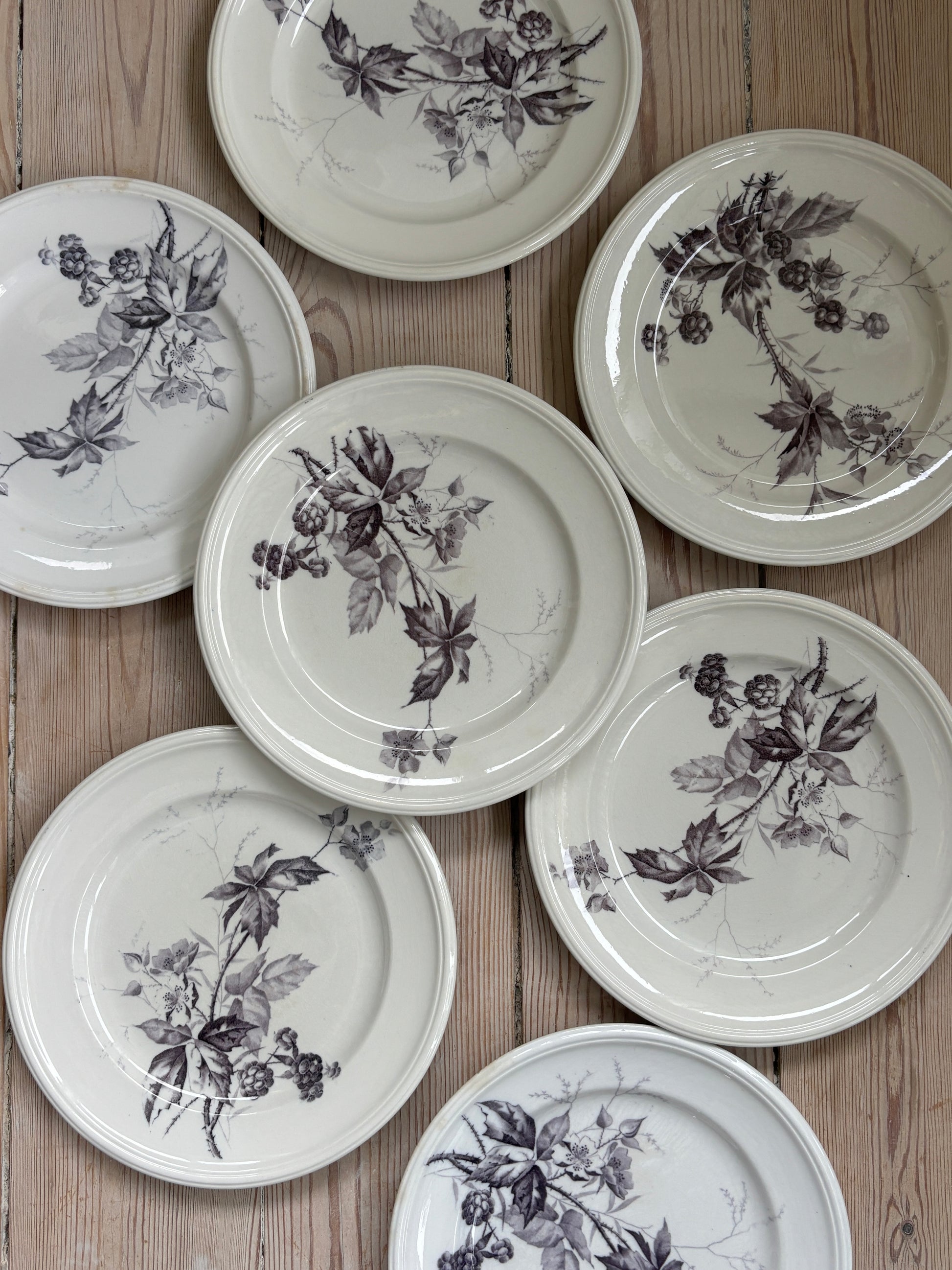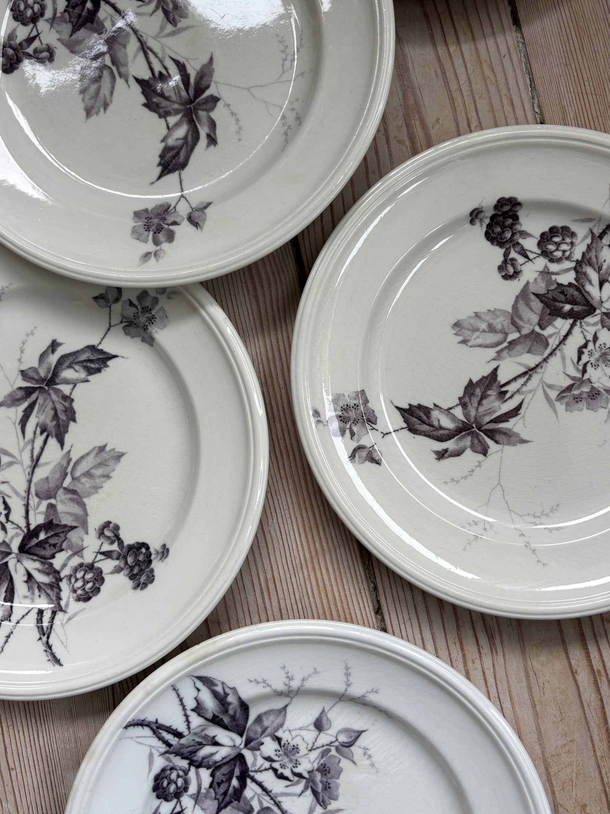 Fine frokost tallerkner med mørk lilla motiv