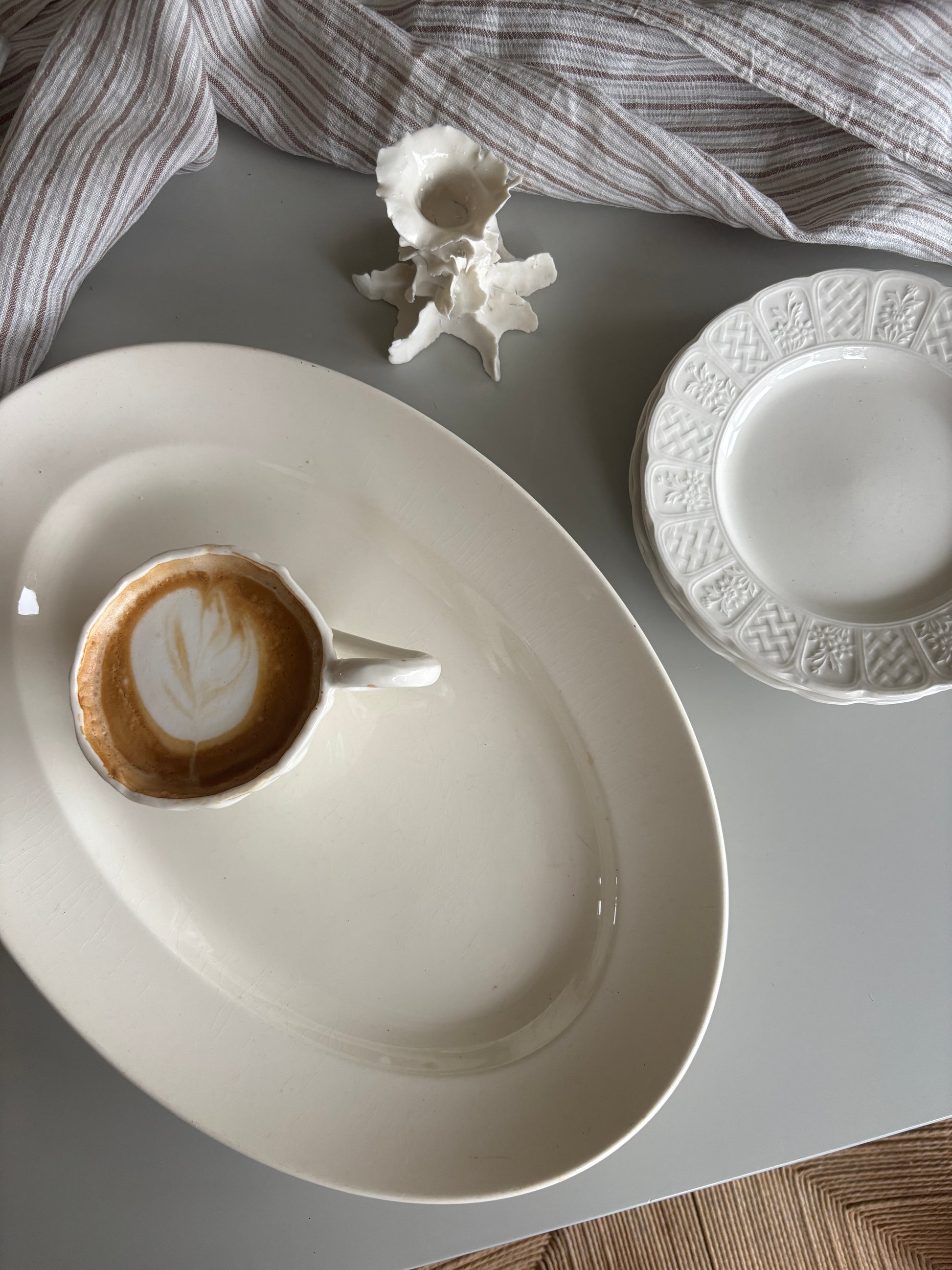 Smukt cremefarvet Aluminia fad, Alma