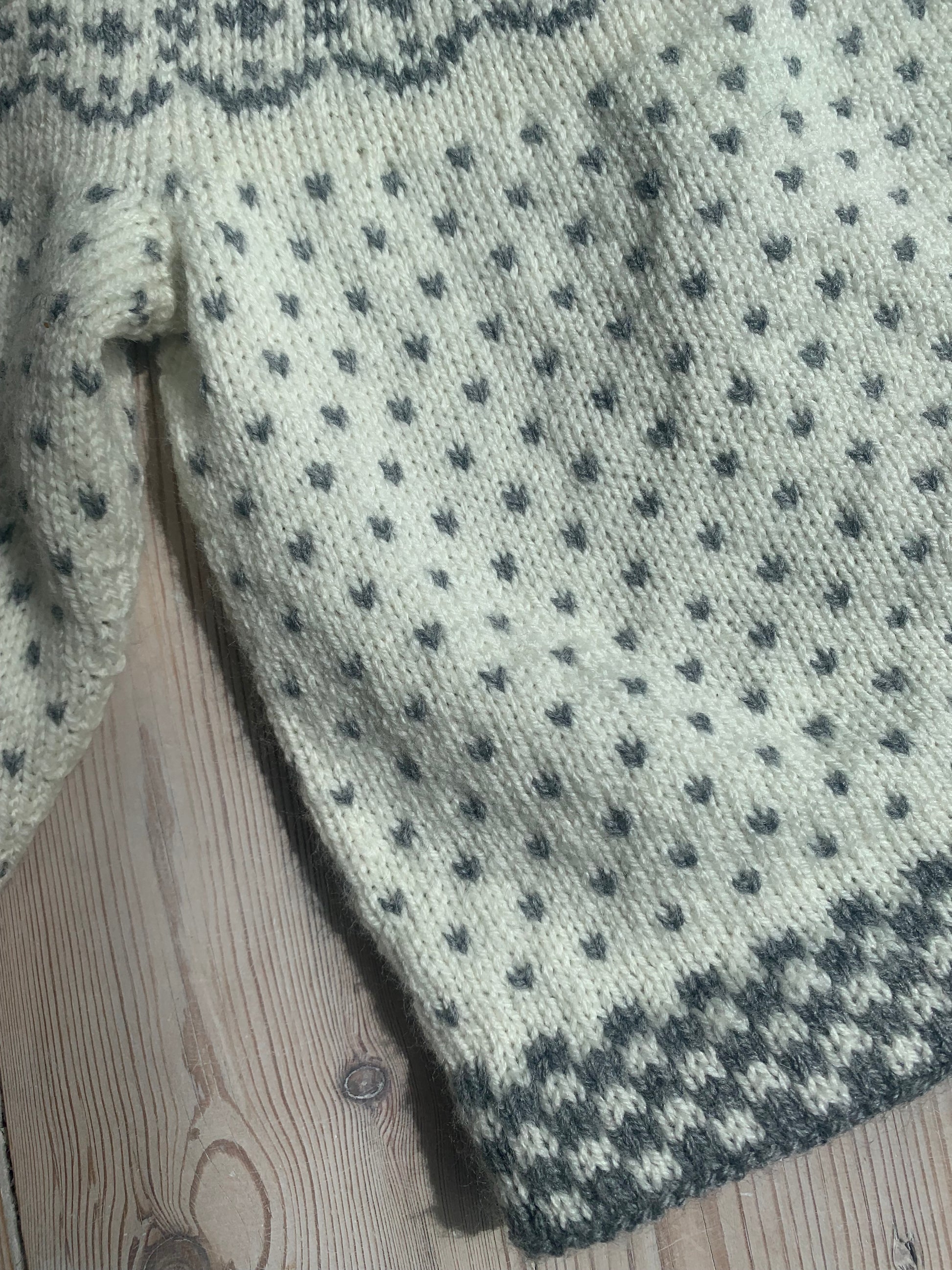 Fineste hjemmestrikket børnestrik. Passer 2-4 år ca