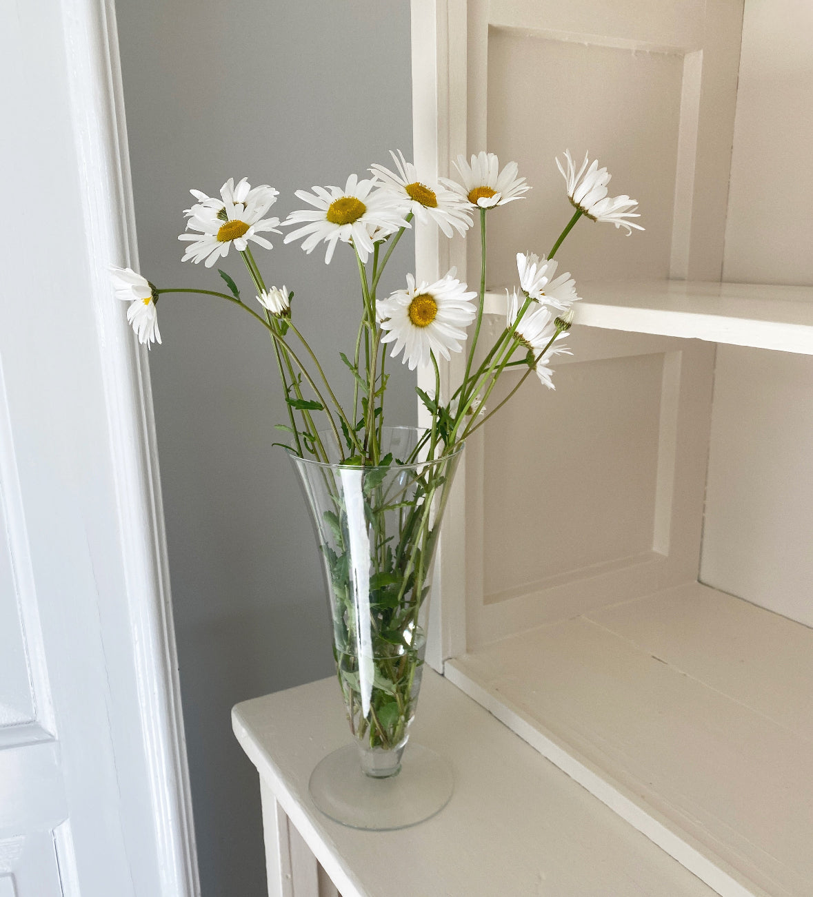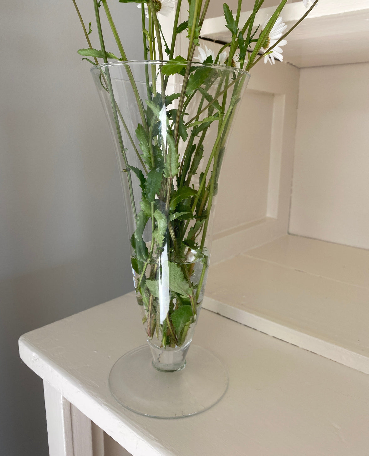 Smuk enkel glasvase på fod.