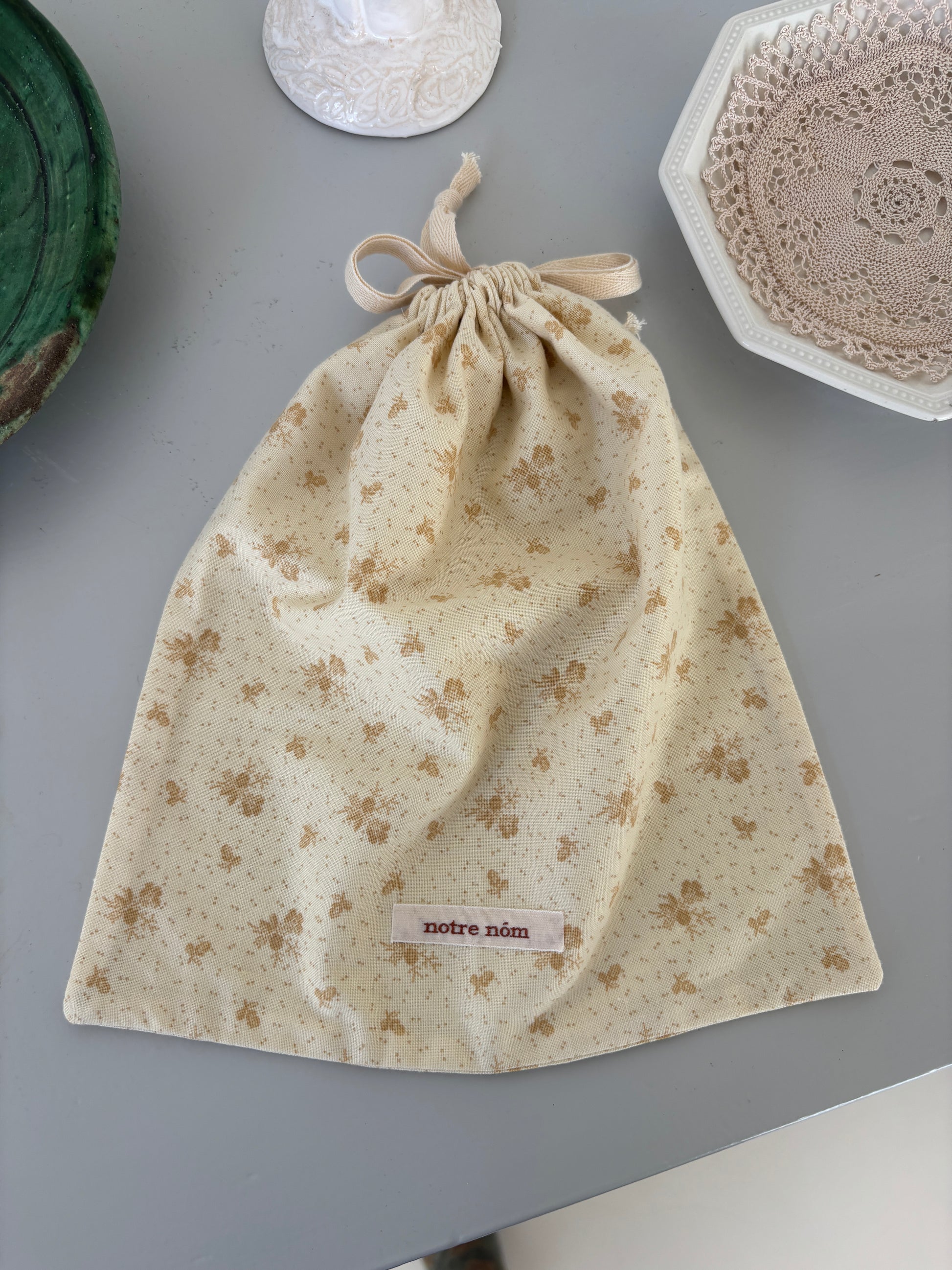 Håndlavet stofpose med snoreluk. I det fineste stof.
