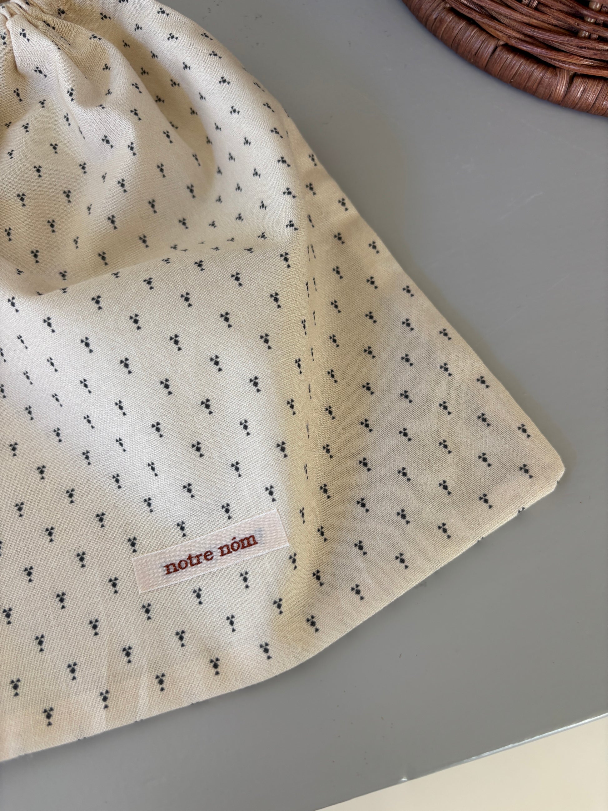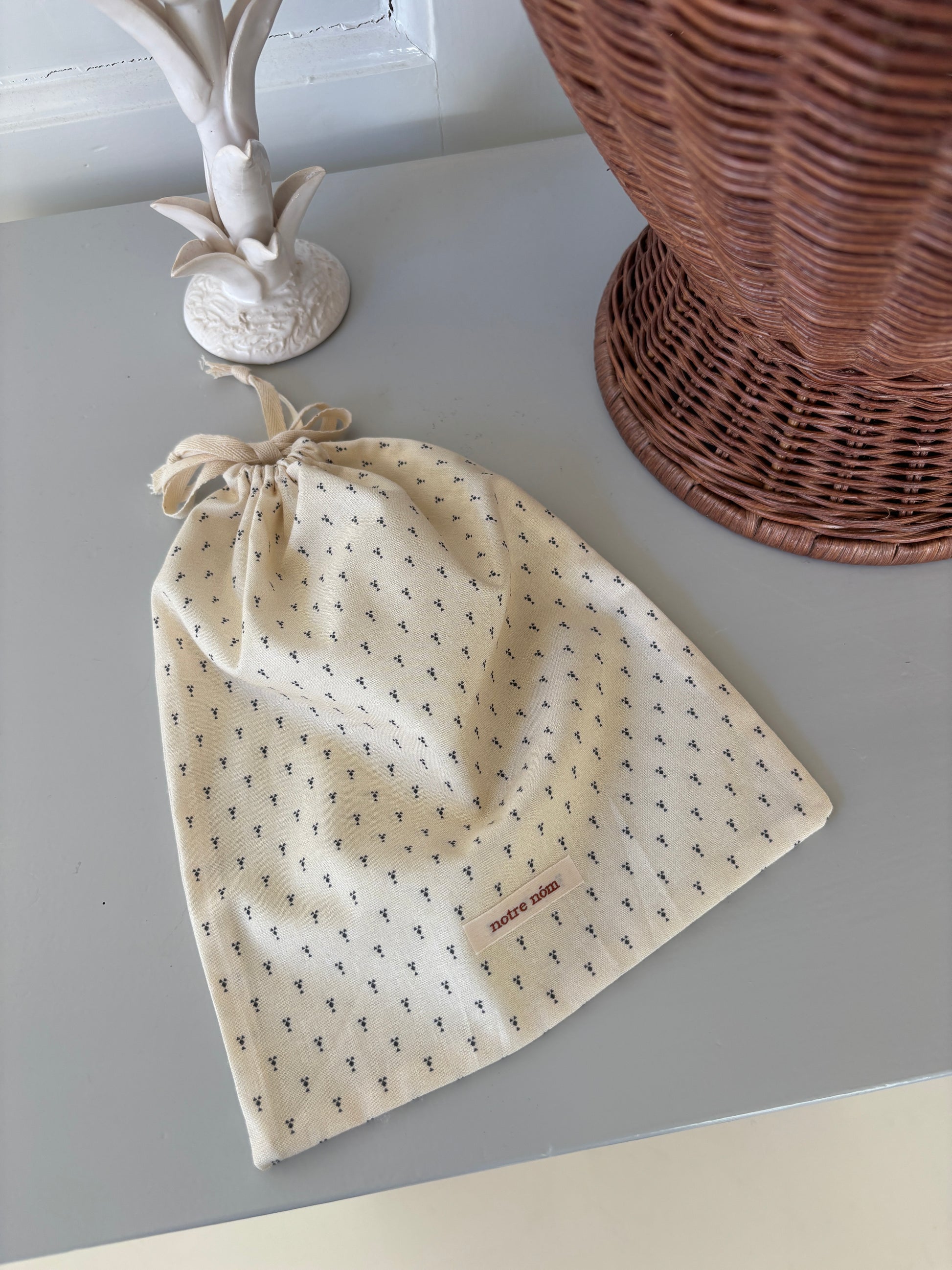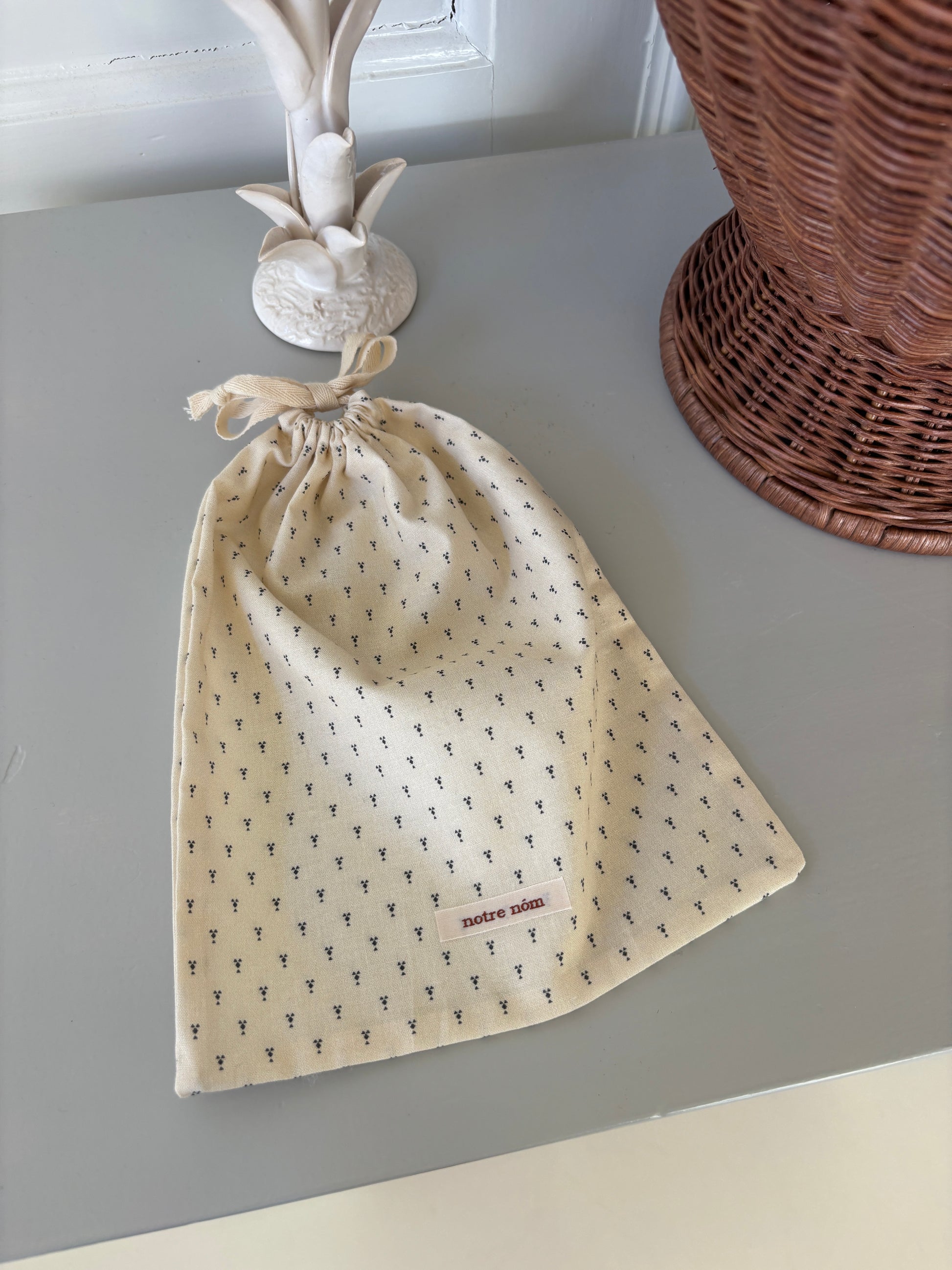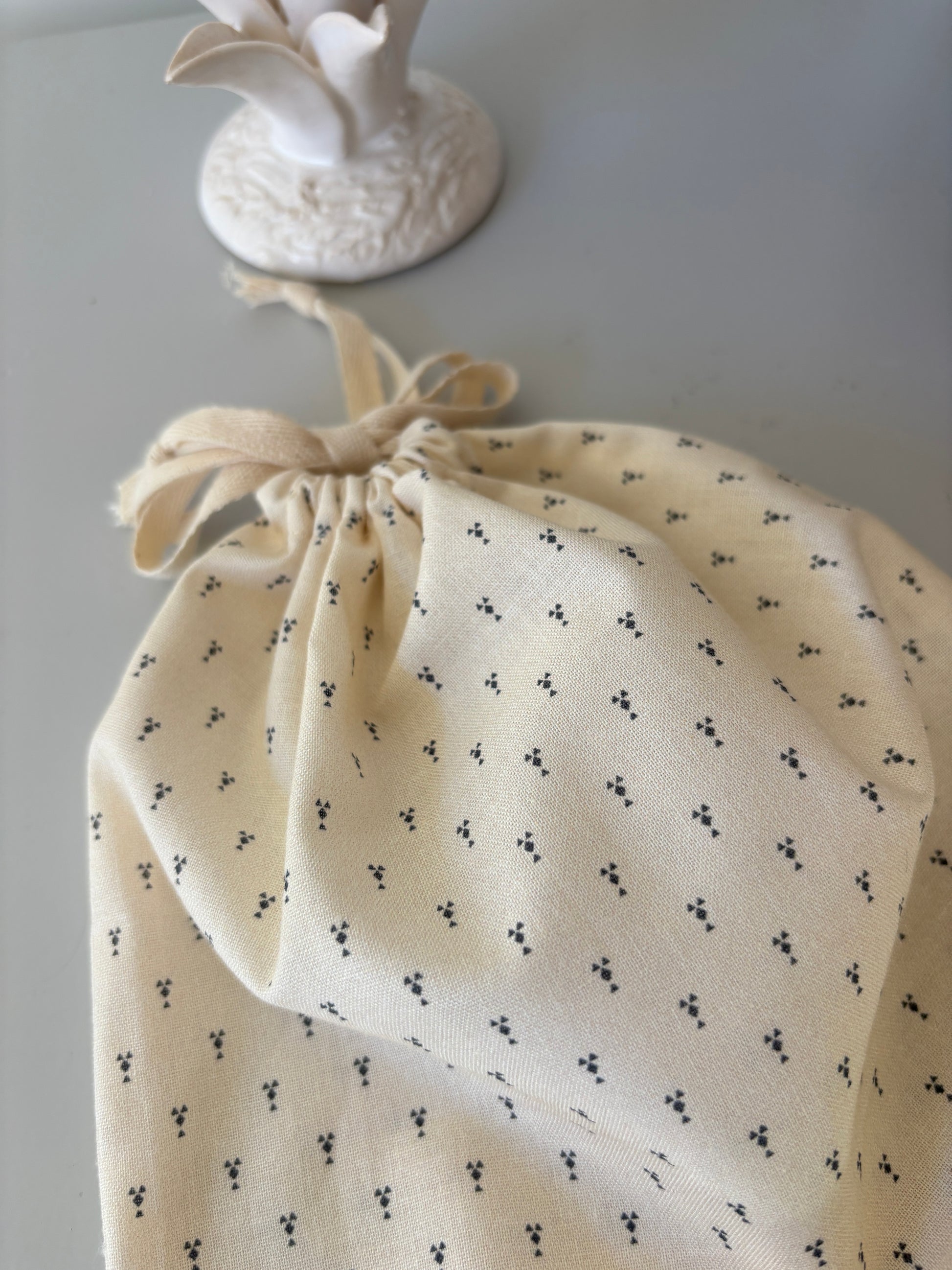 Håndlavet stofpose med snoreluk. I det fineste stof.