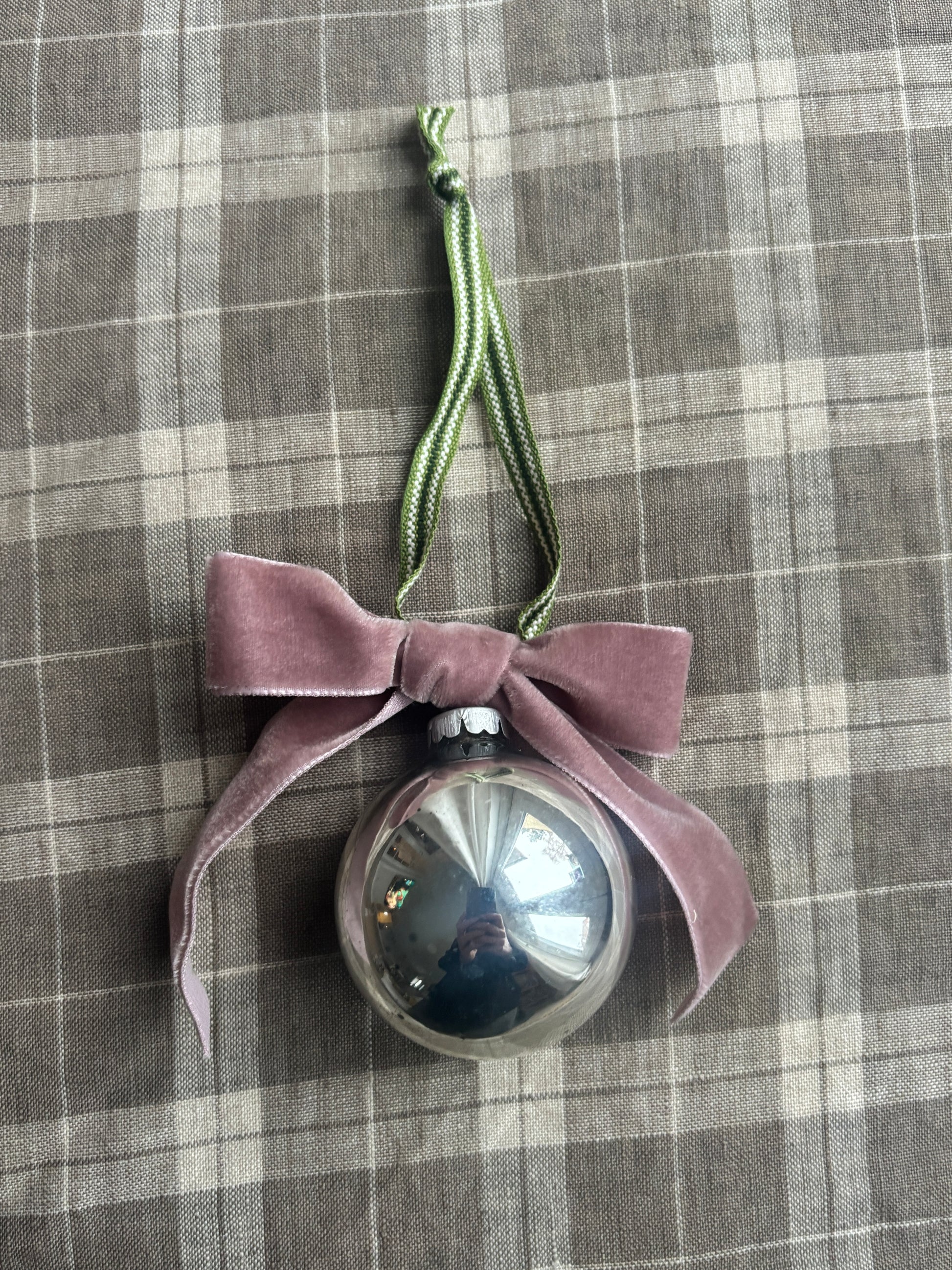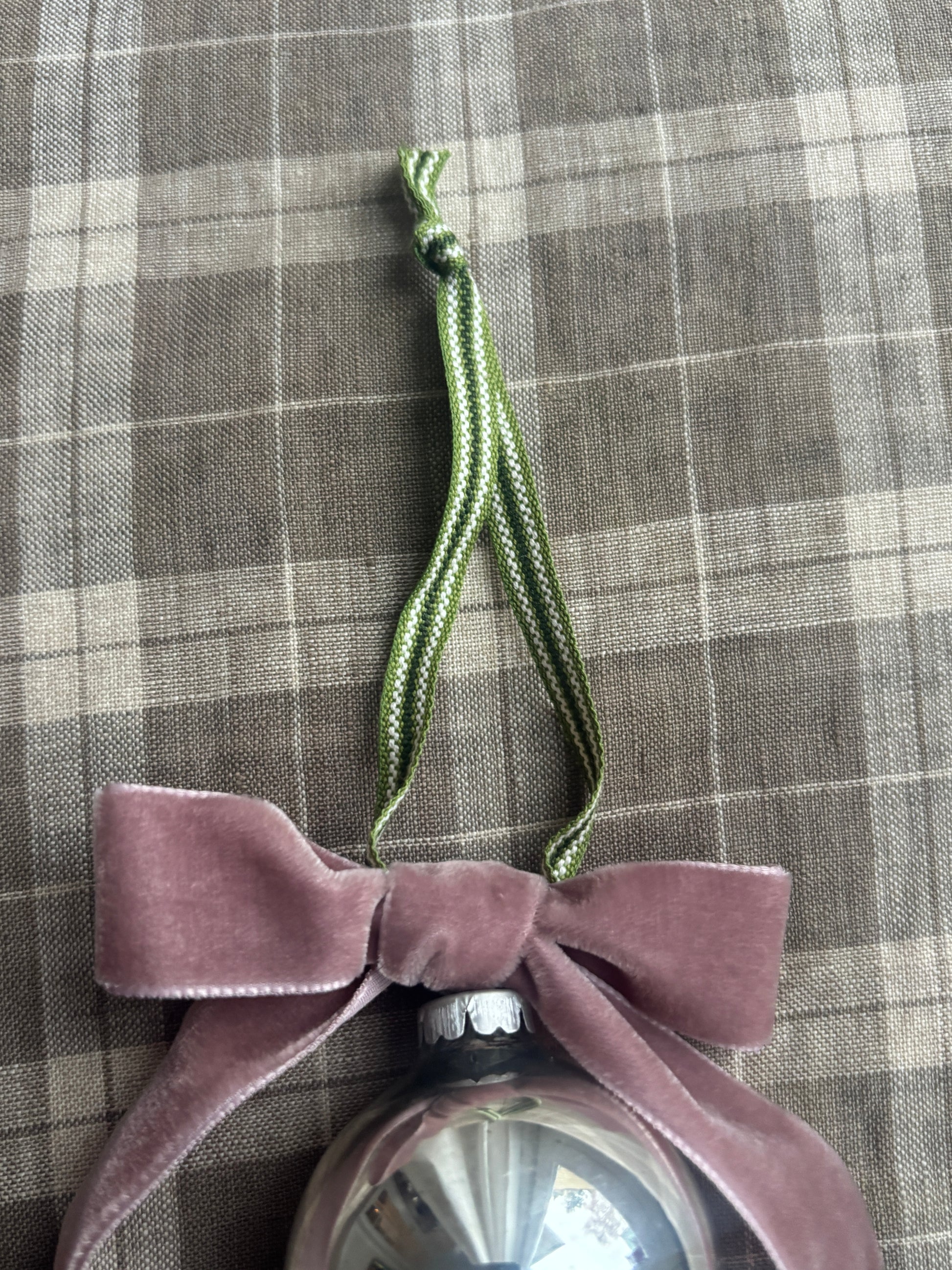Julekugle med velourbånd, lyserød