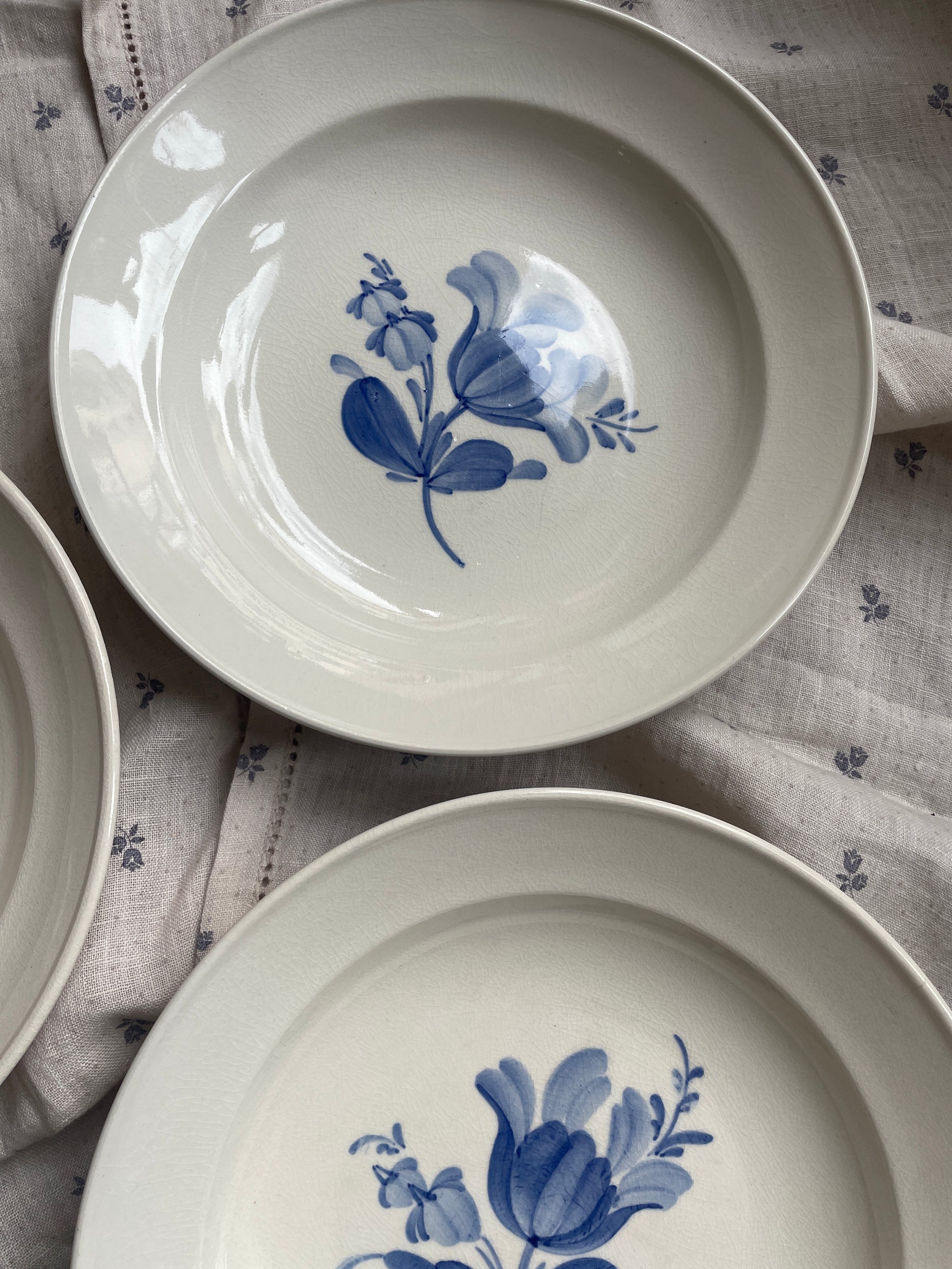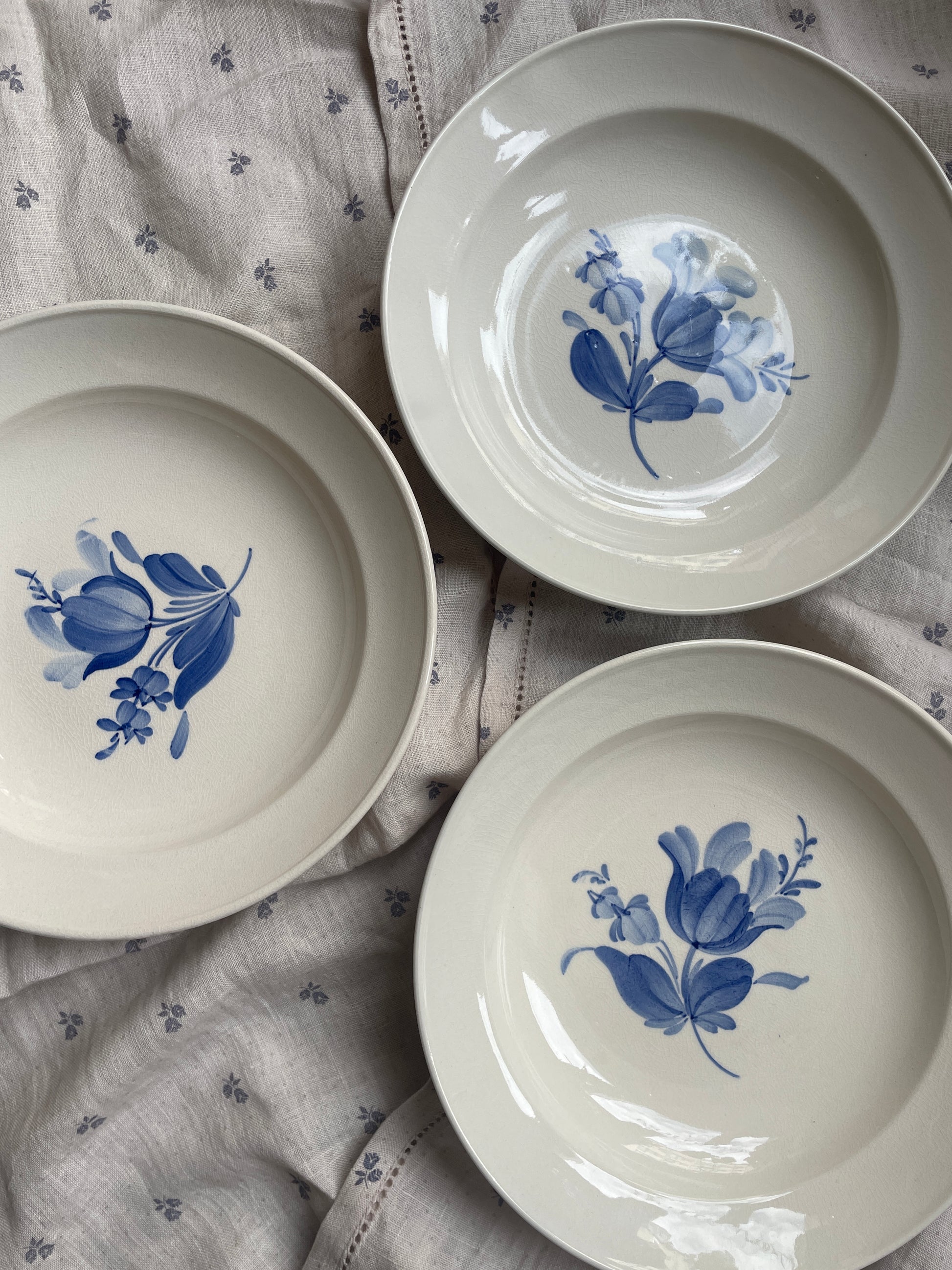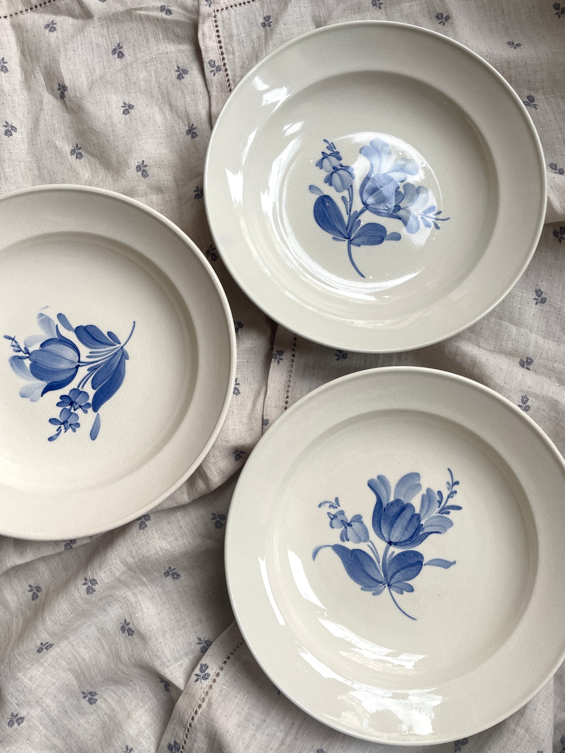 Fine cremefarvet tallerkener med blå blomst