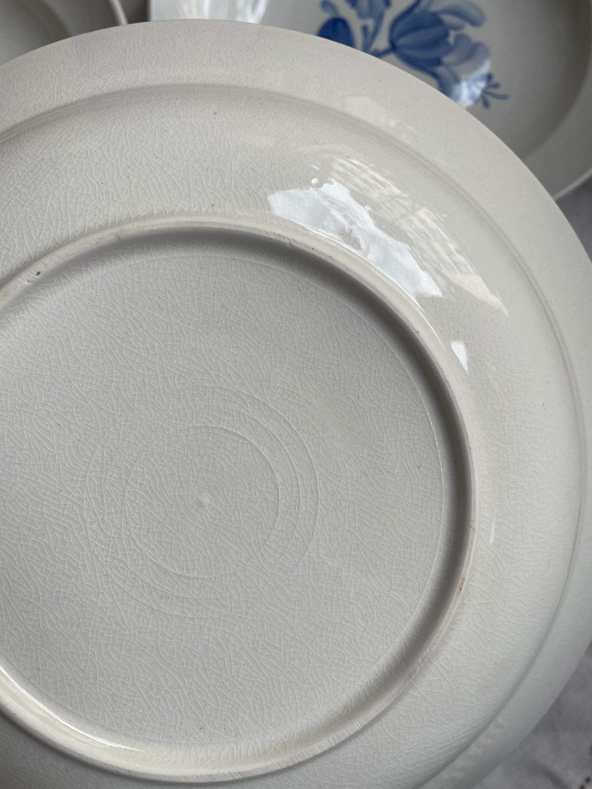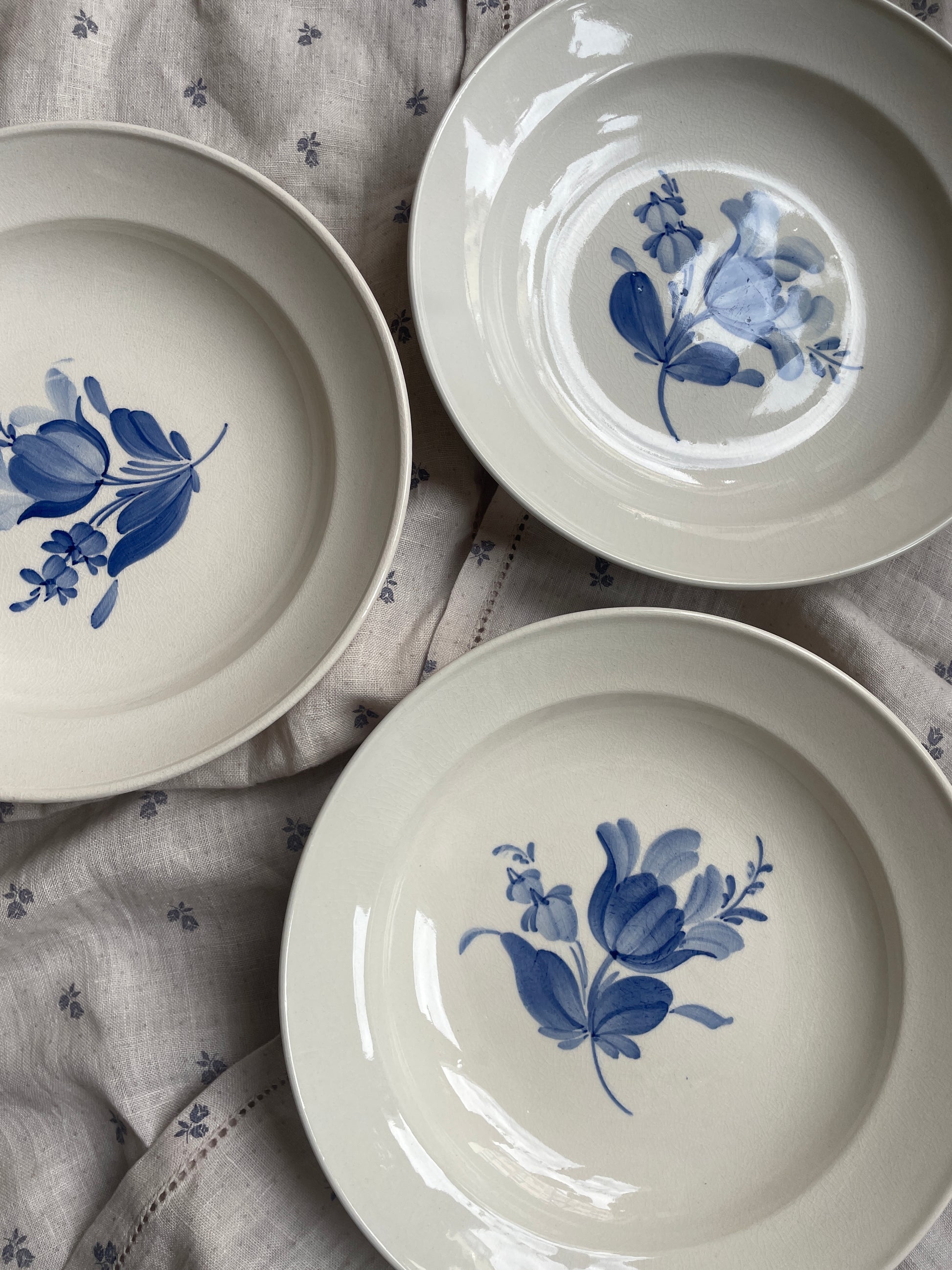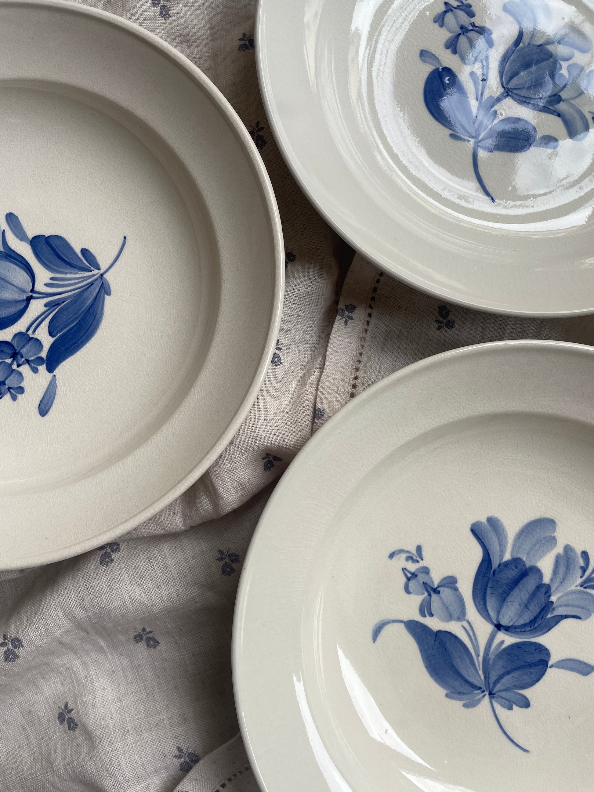 Fine cremefarvet tallerkener med blå blomst